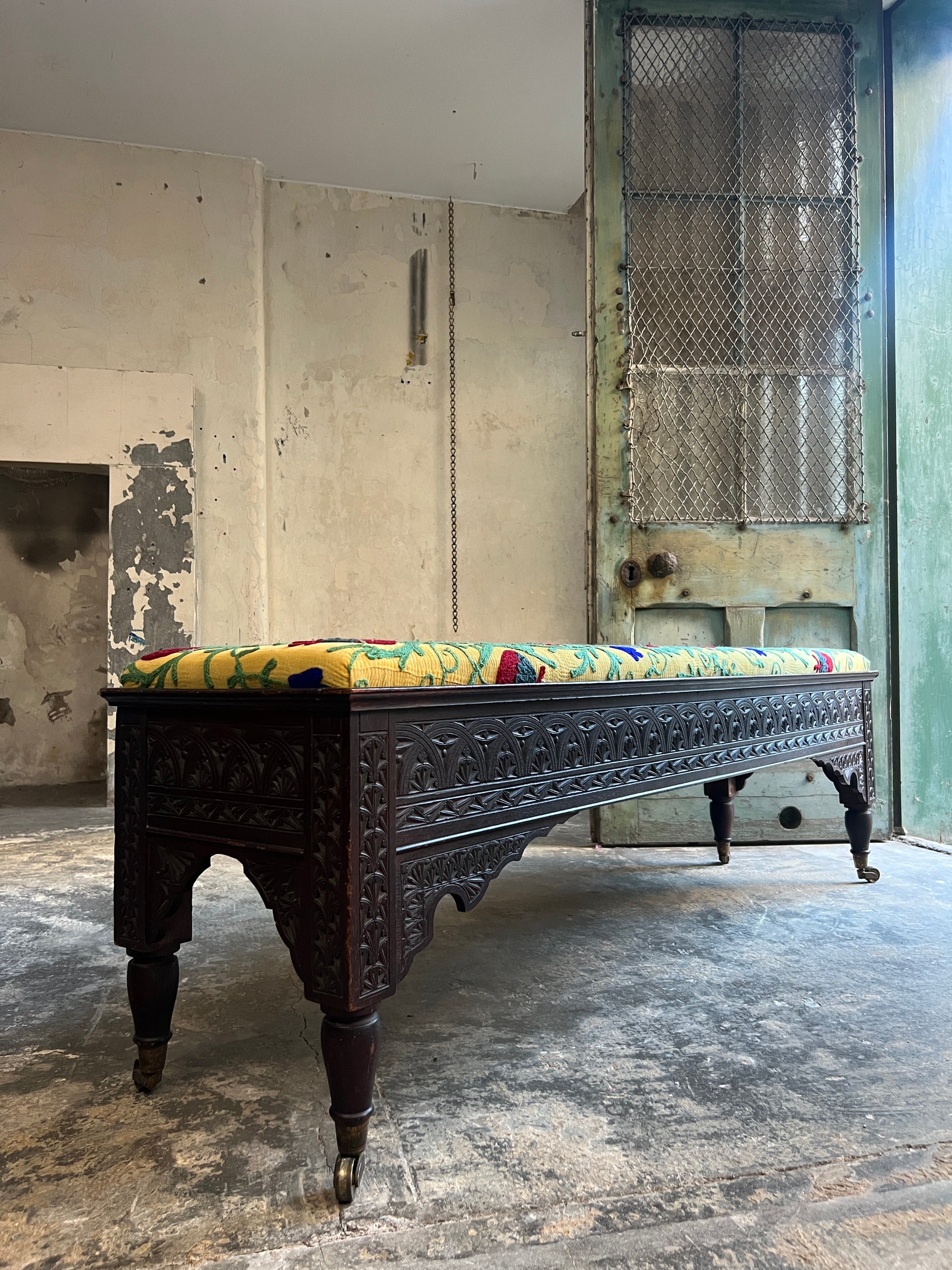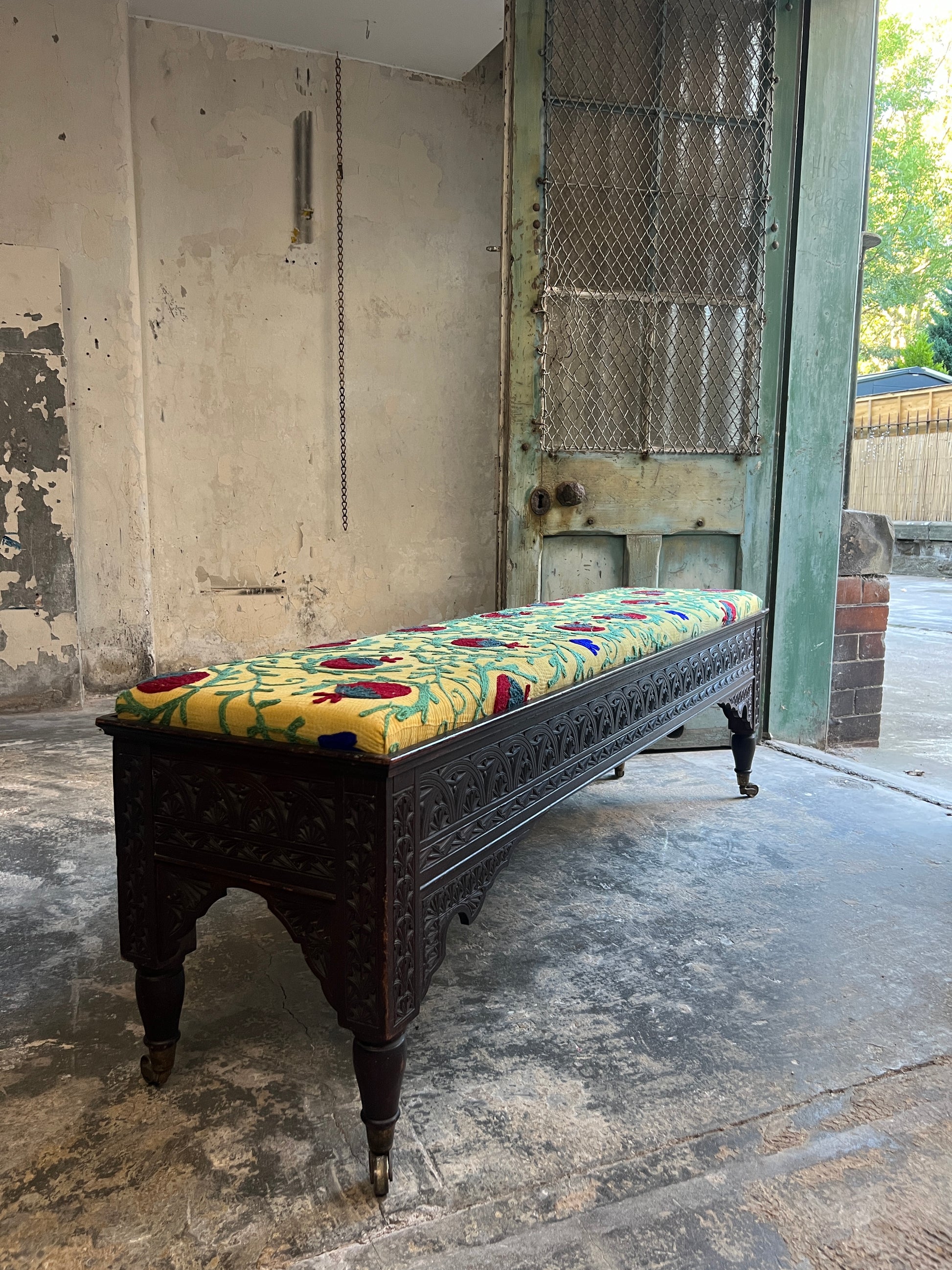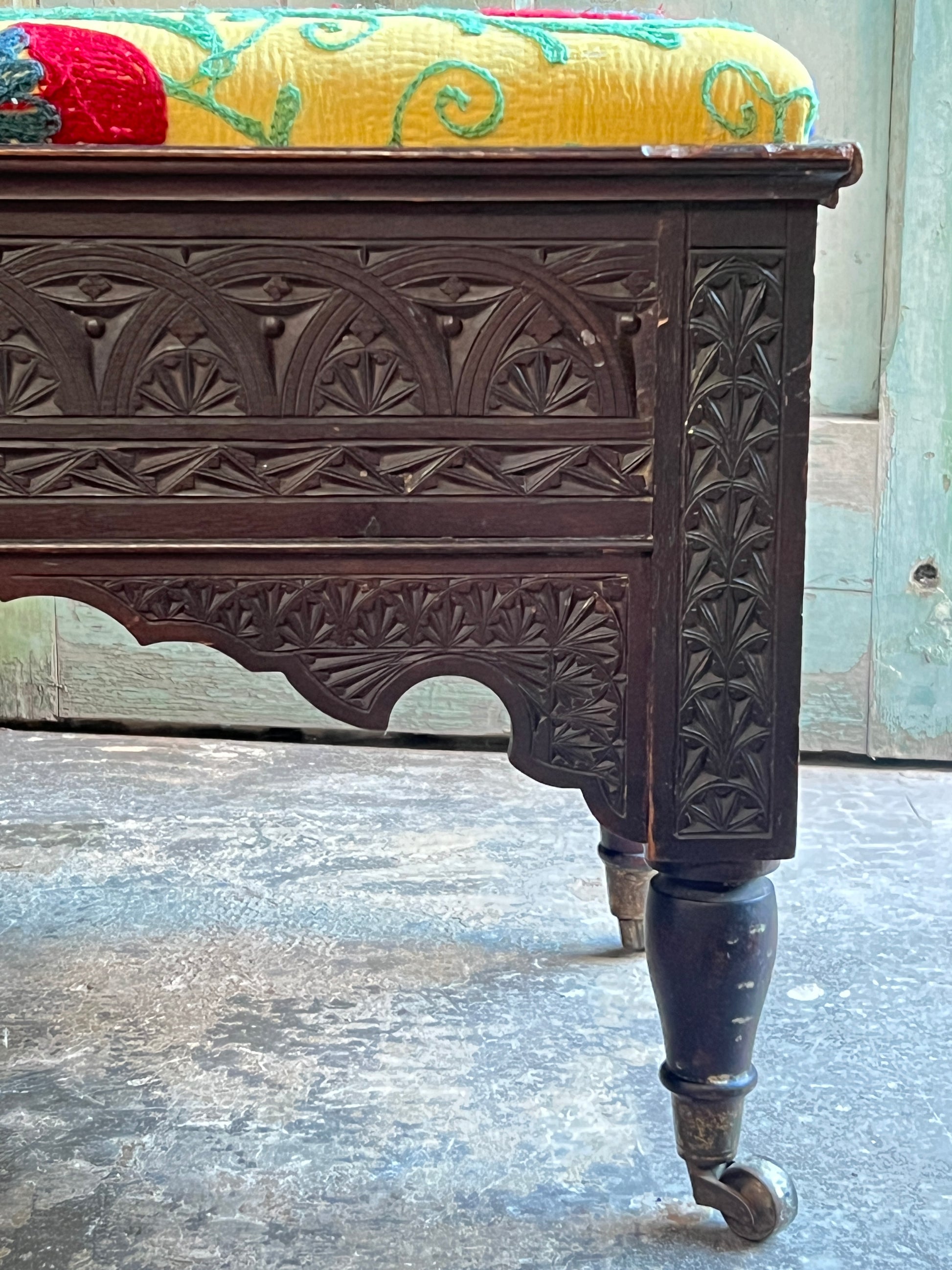 A Scottish "Caithness" Chip Carved Mahogany Bench