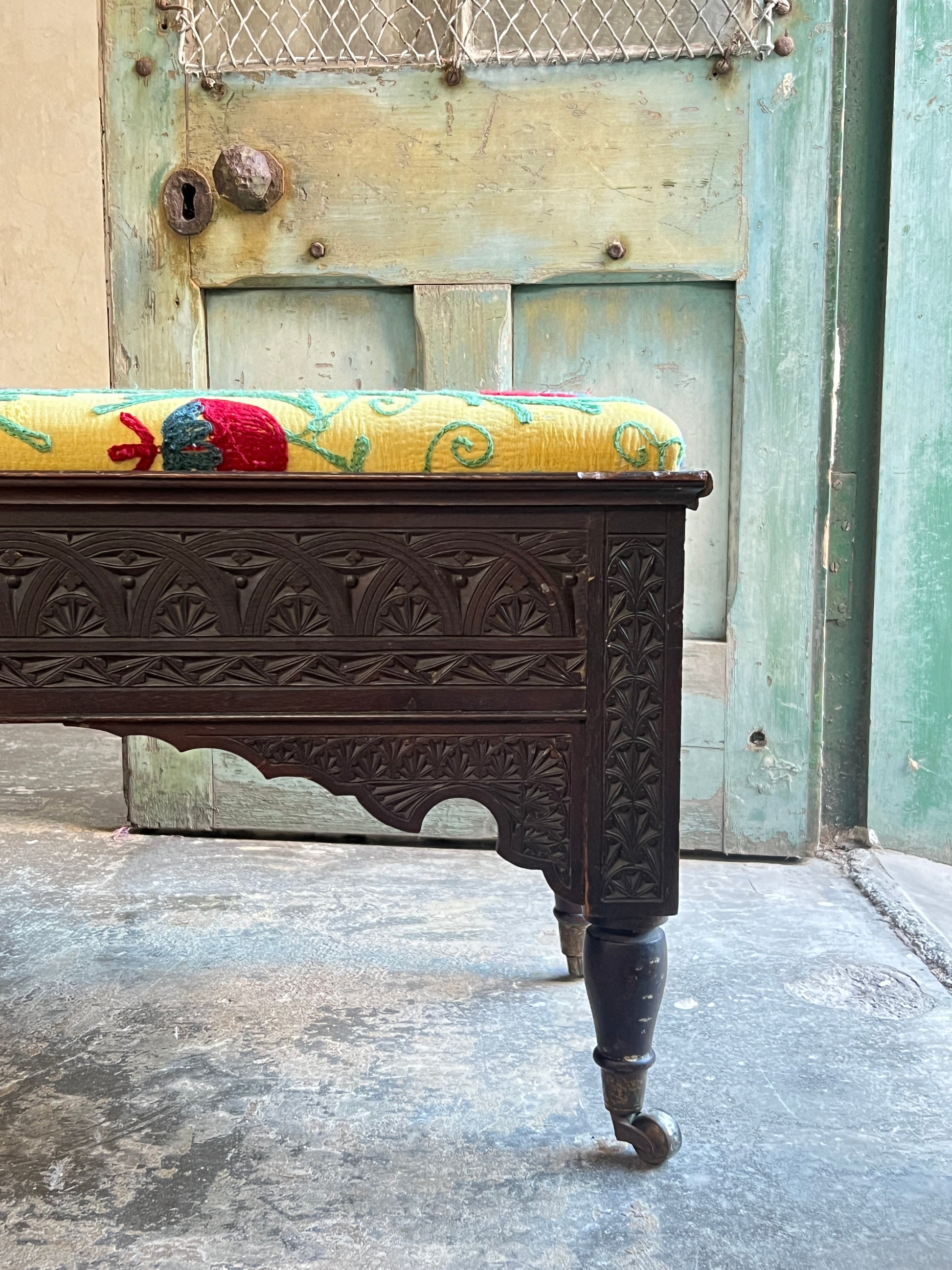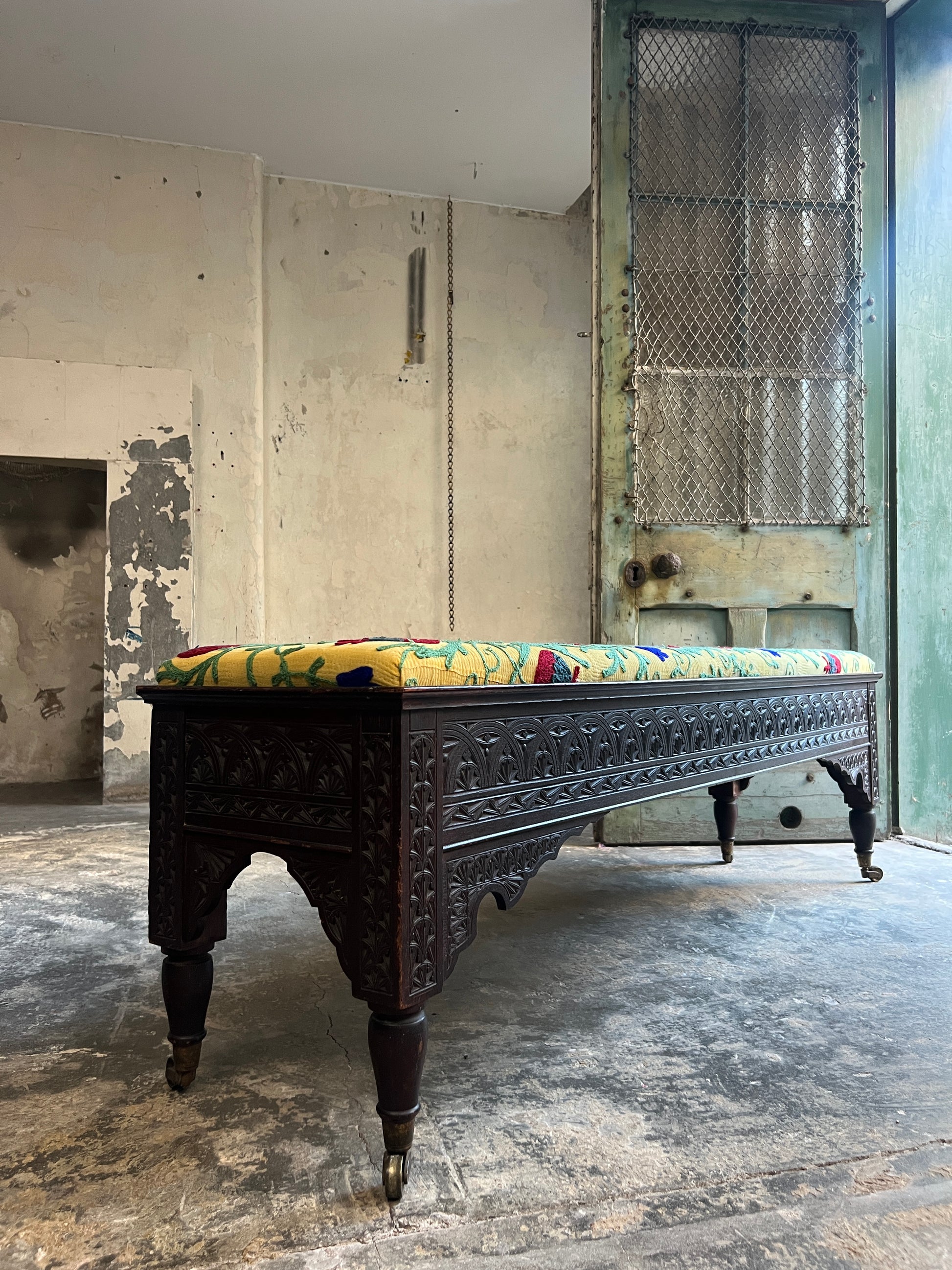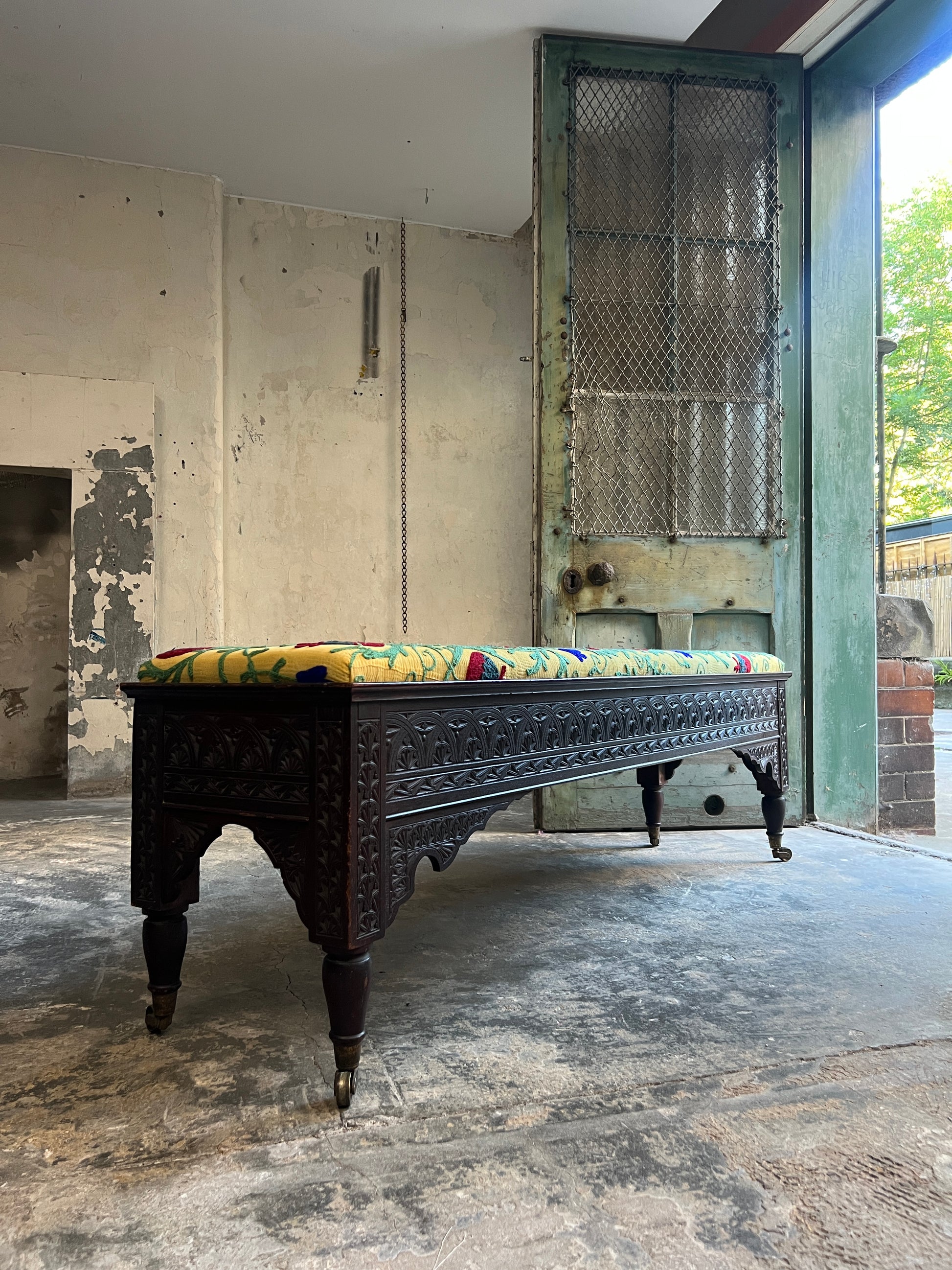 A Scottish "Caithness" Chip Carved Mahogany Bench
