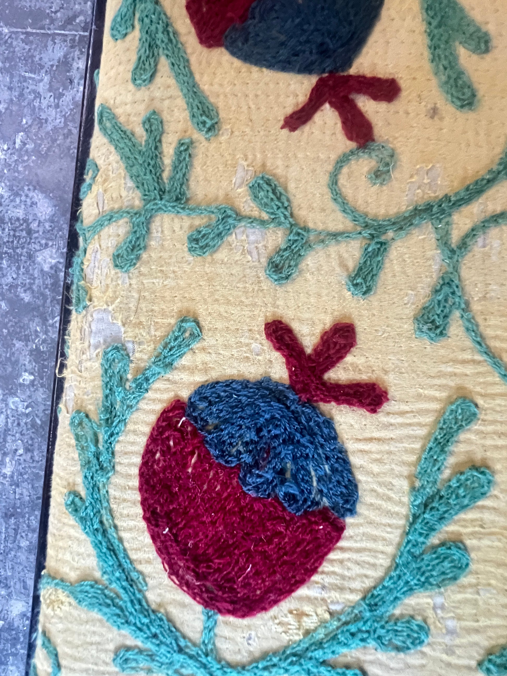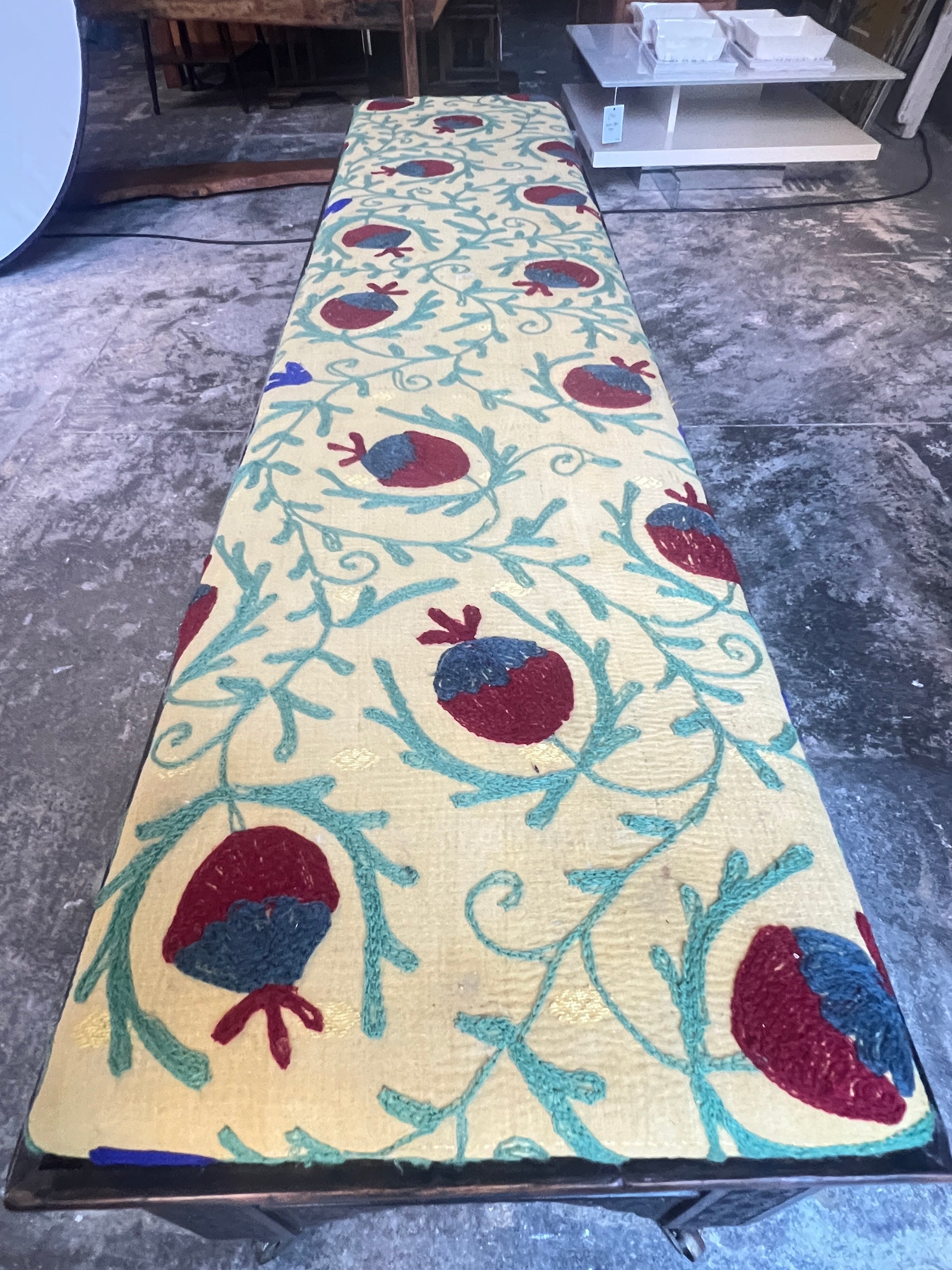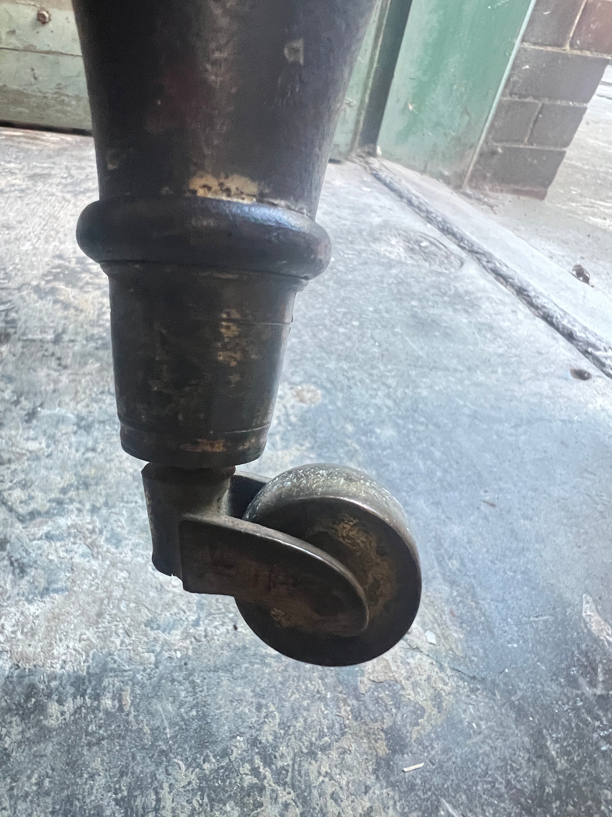 Brass castors on turned legs below spandrels supporting the returns and frieze.