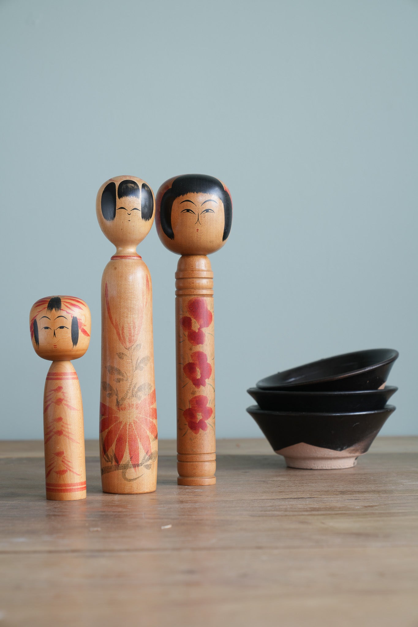 Set of 3 Traditional Japanese Folk Art Kokeshi Dolls 098