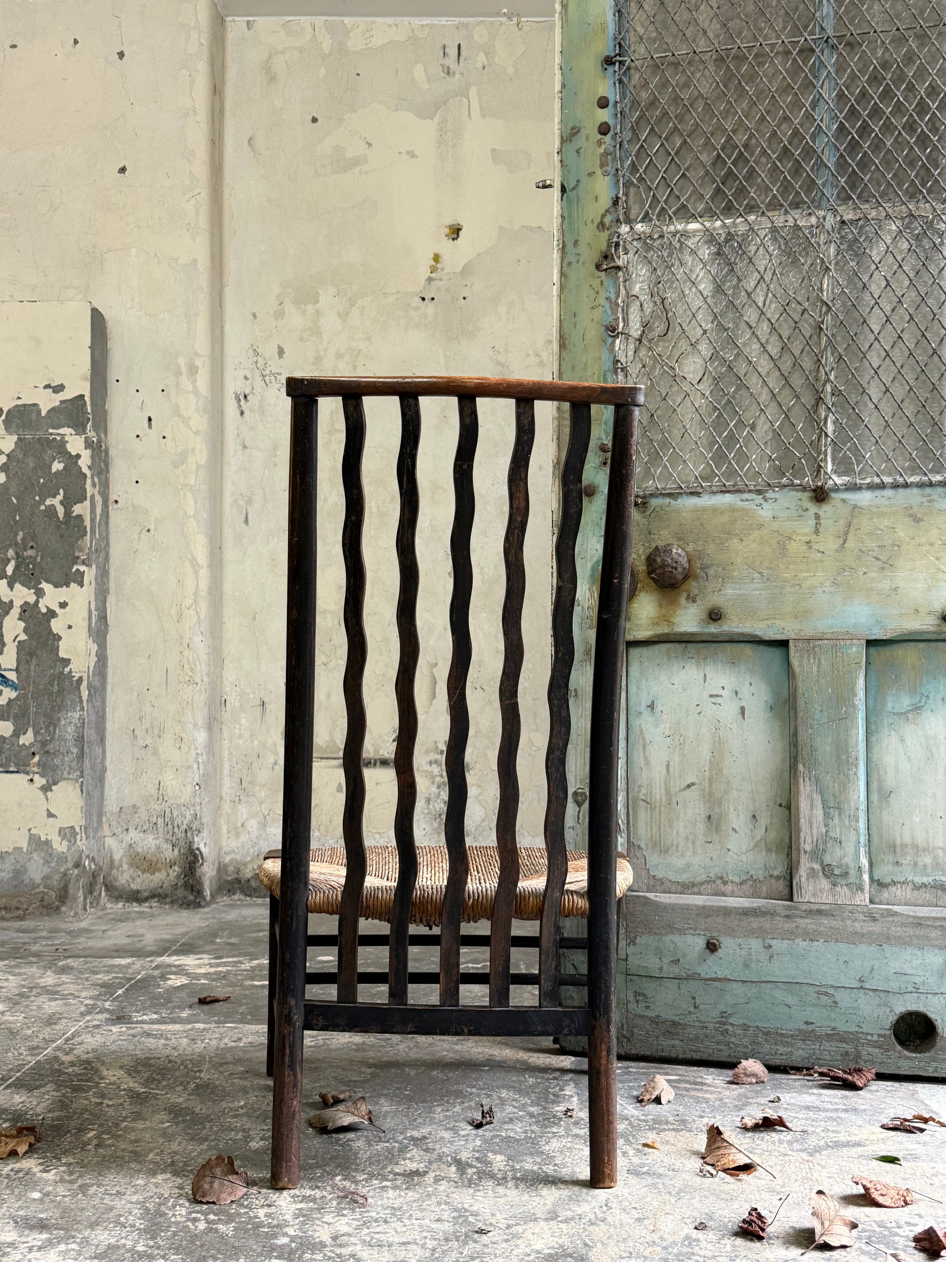 An Arts & Crafts movement Morris & Co lath back chair produced for Liberty & Co with distinctive tall back and finely shaped top rail supporting the iconic wavy lath back which continues down past the back of the attractive cane seat.