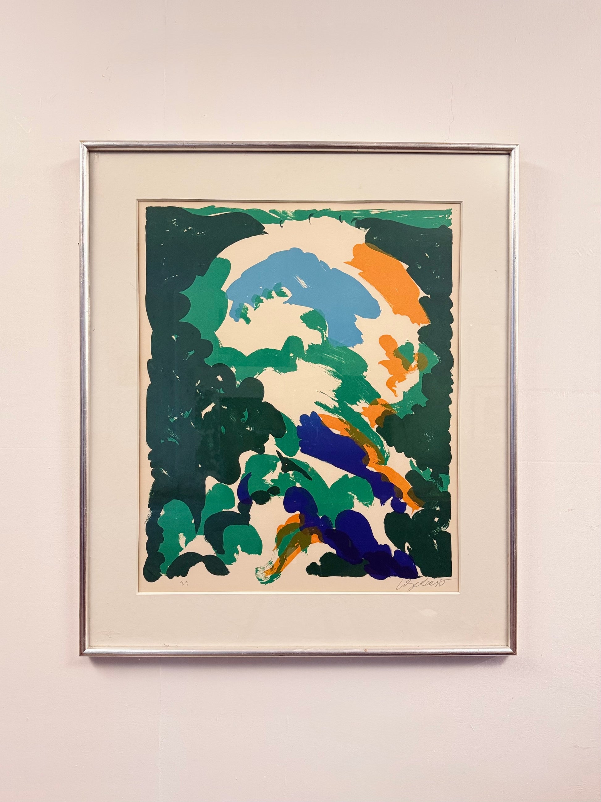 A colour lithograph by Maurice Wyckaert, a Belgian neo-expressionist painter, titled "Spiegel aan de wand" - Mirror on the Wall - 1971.