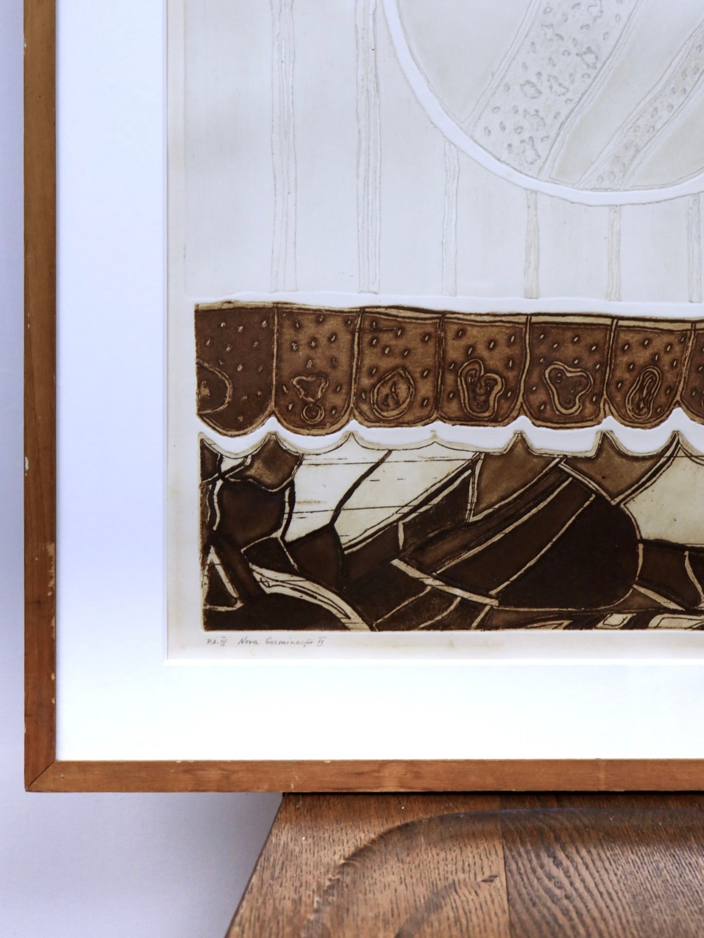 Artist signed in pencil 'P.A. IV' and titled 'Nova Germinação IX' (lower left); signed and dated 'Thereza Miranda / 68' (lower right).