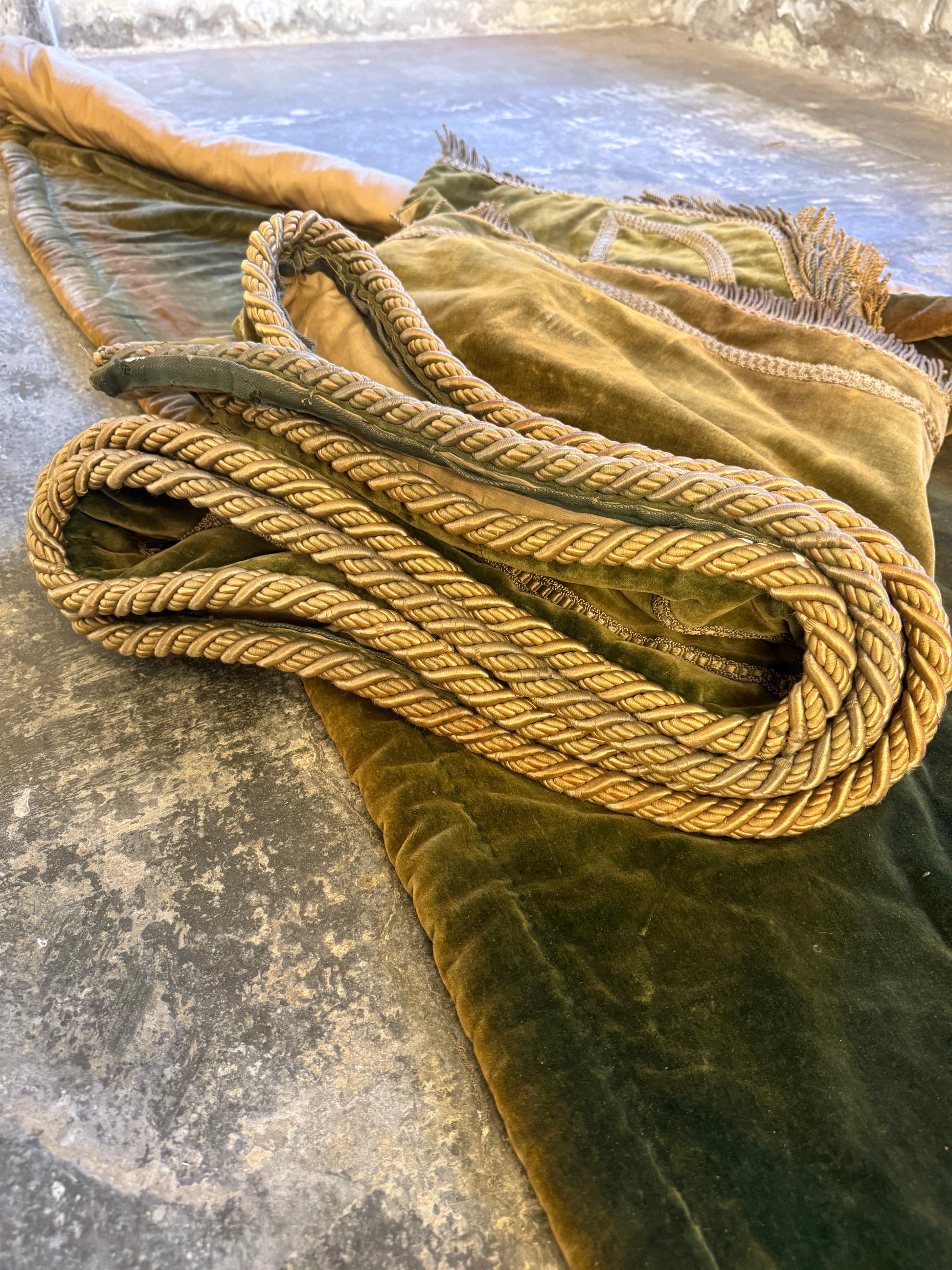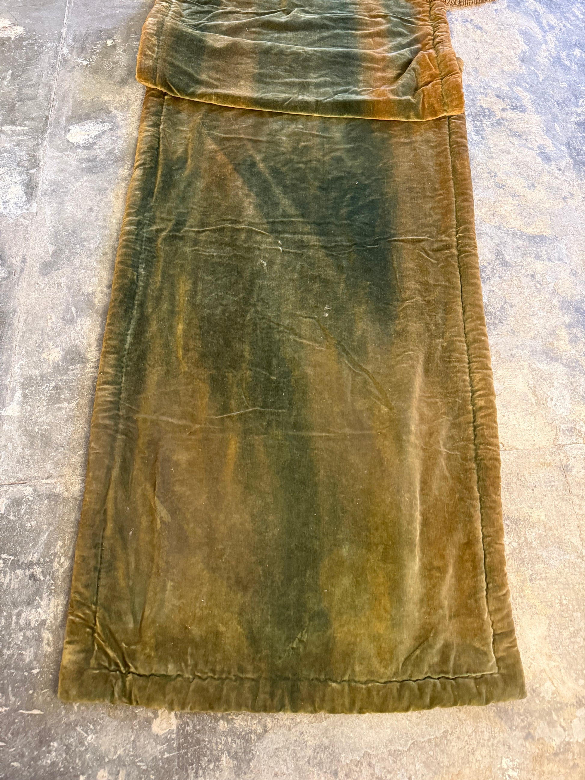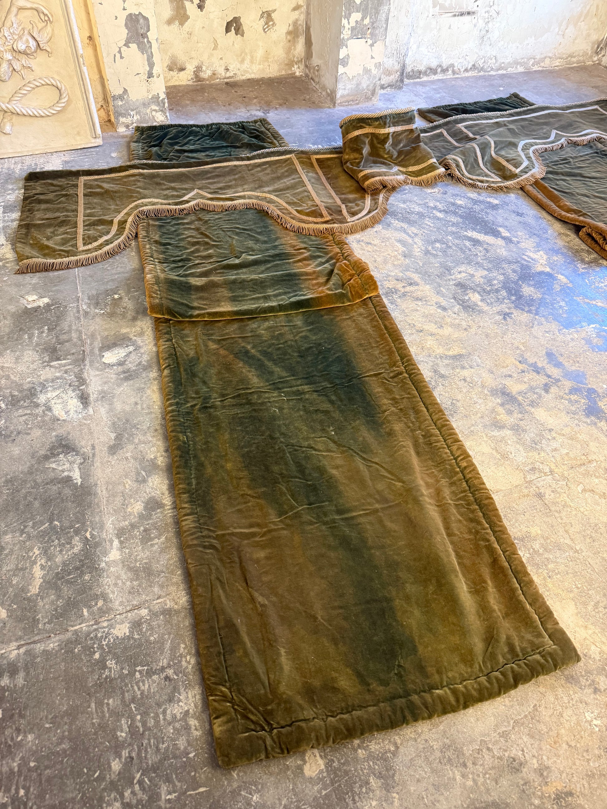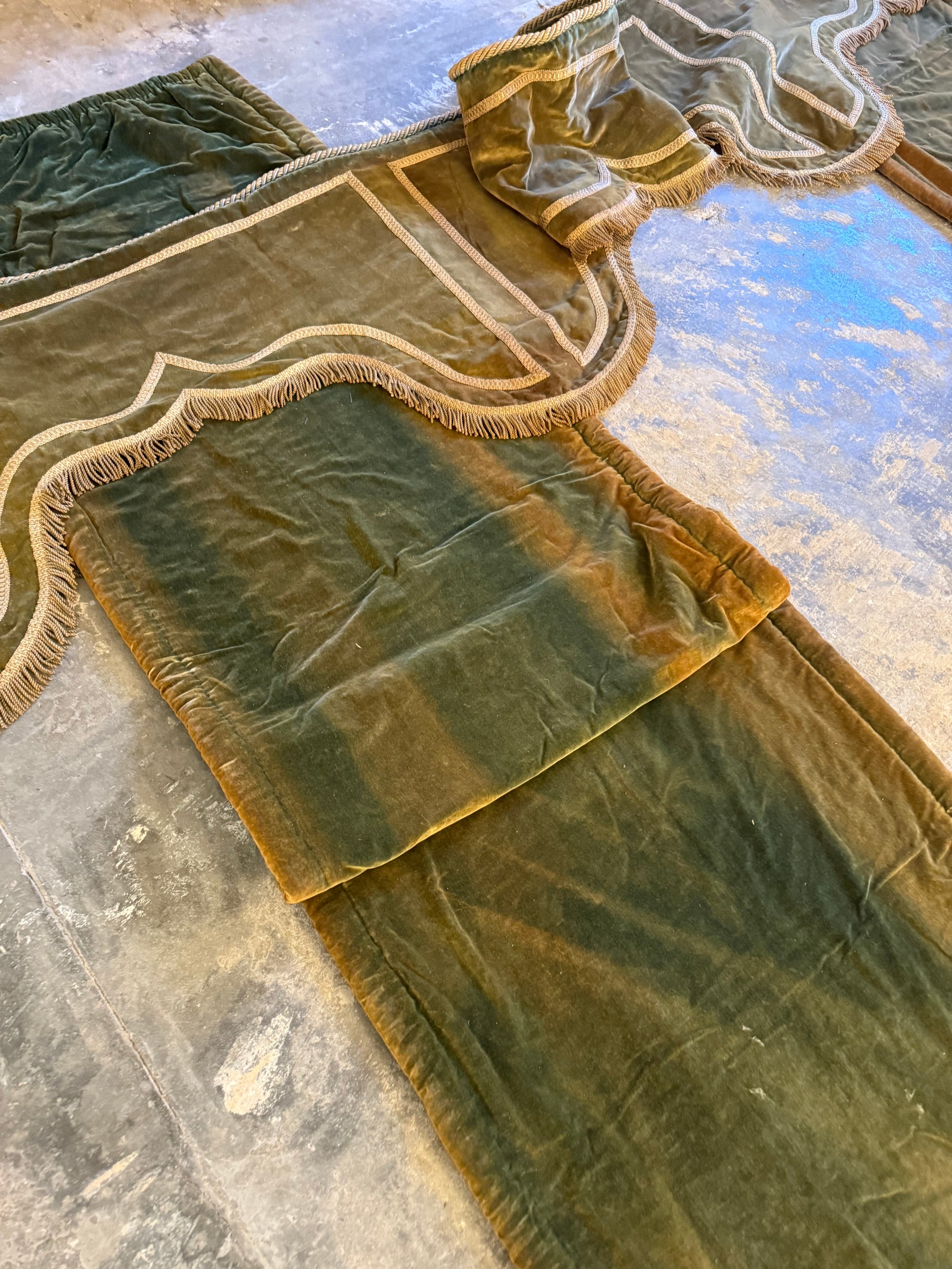 Penicuik House, Scotland ~ Large Pair Green Velvet Curtain Panels & Valance