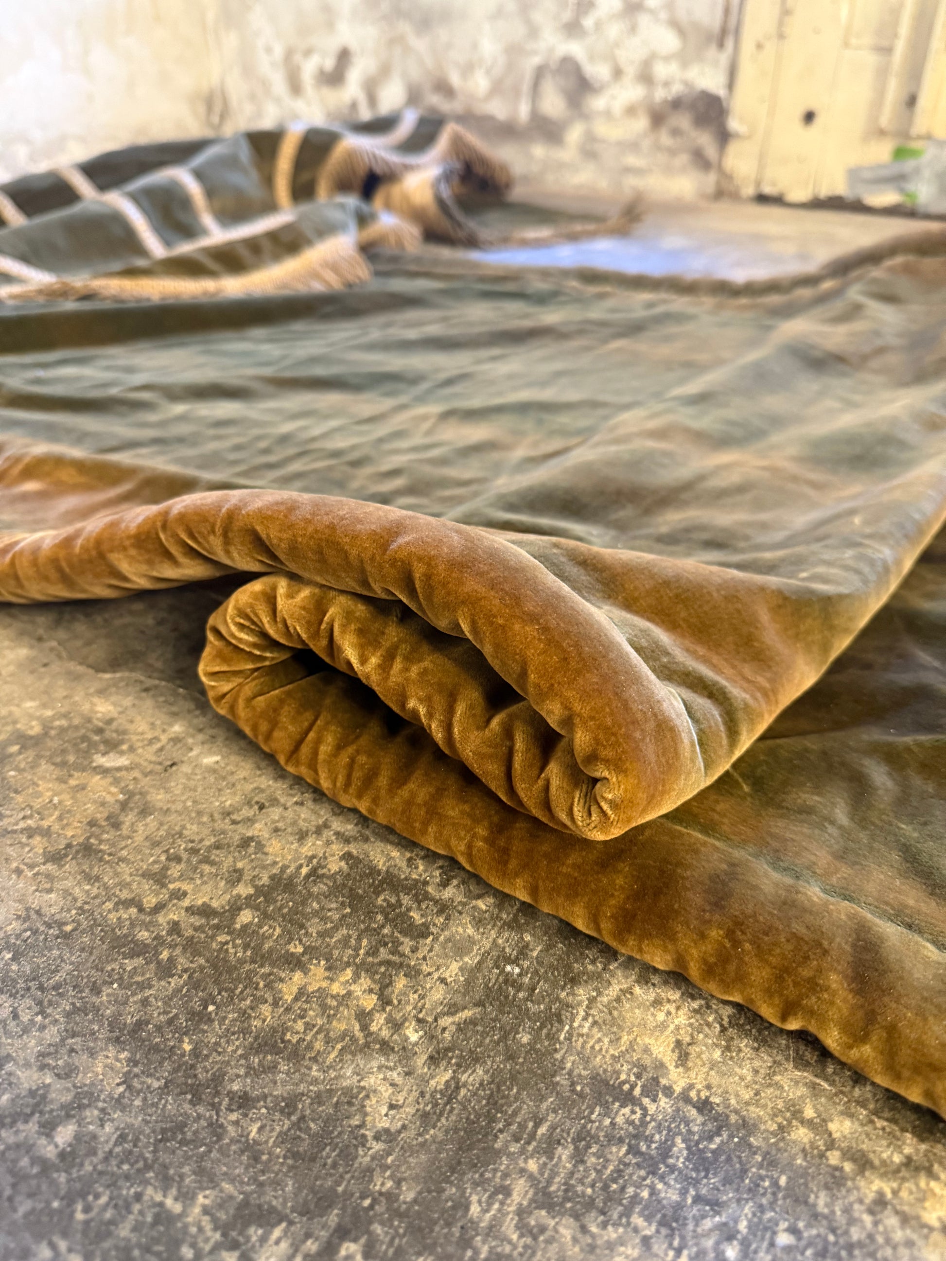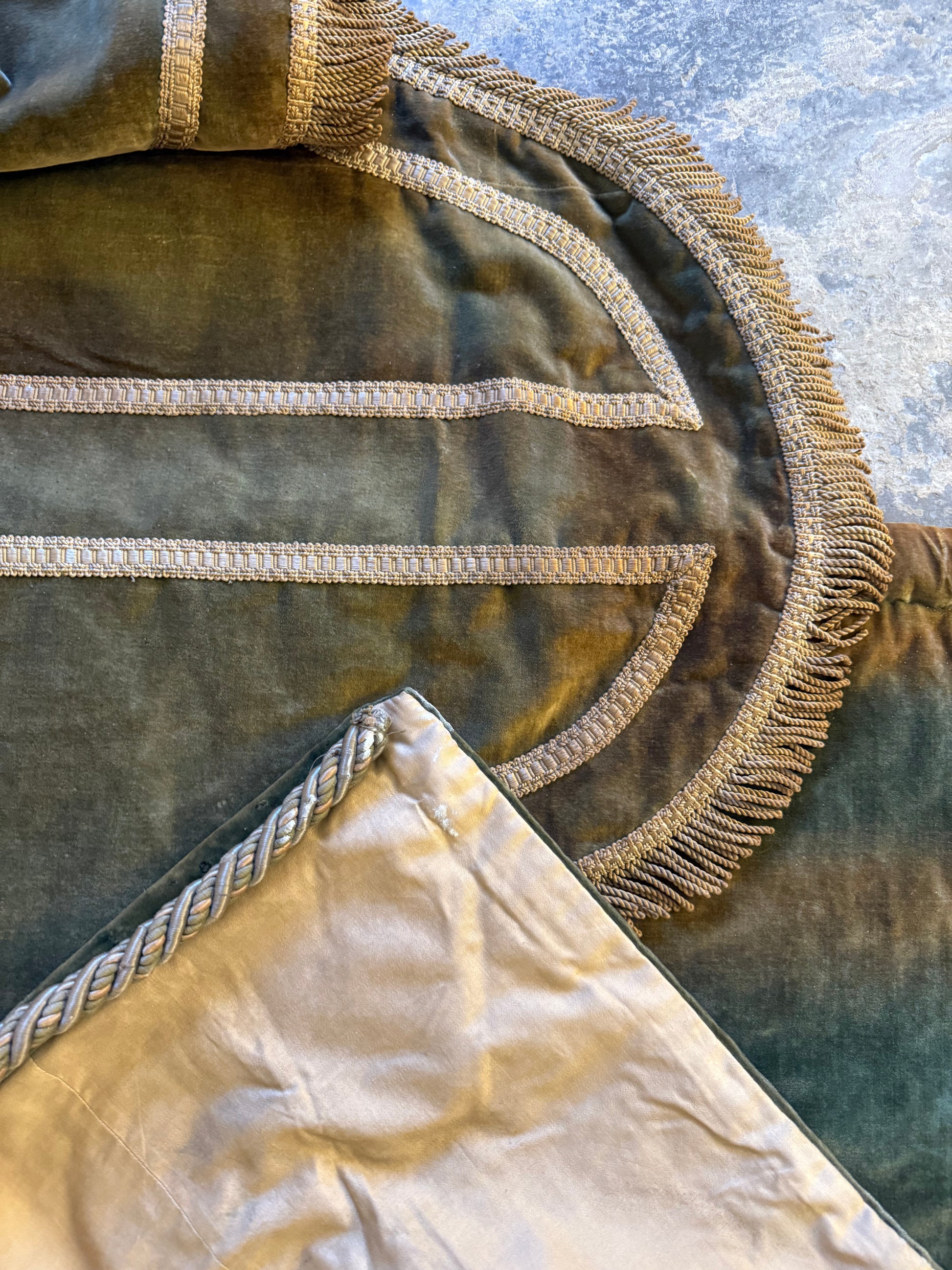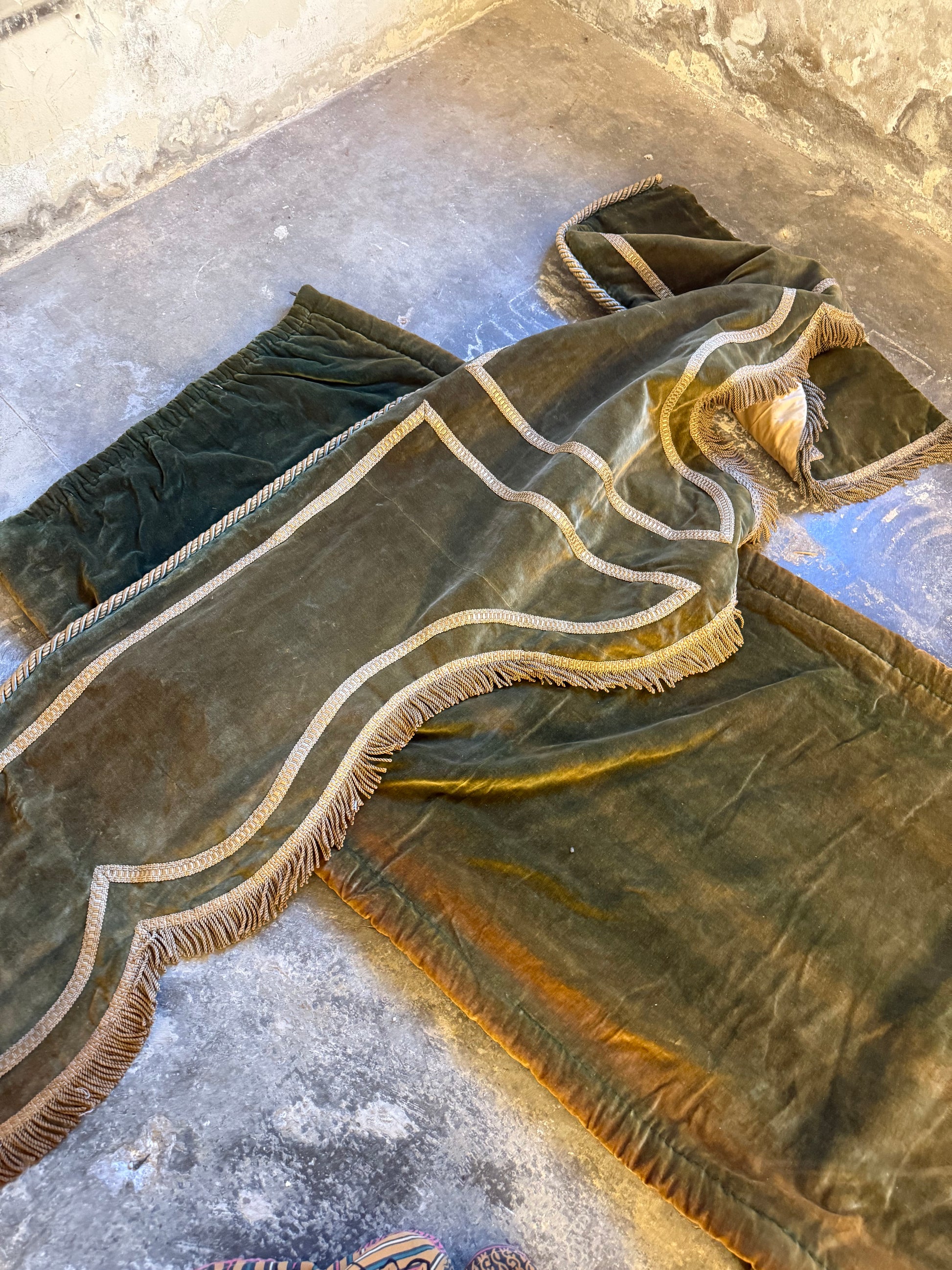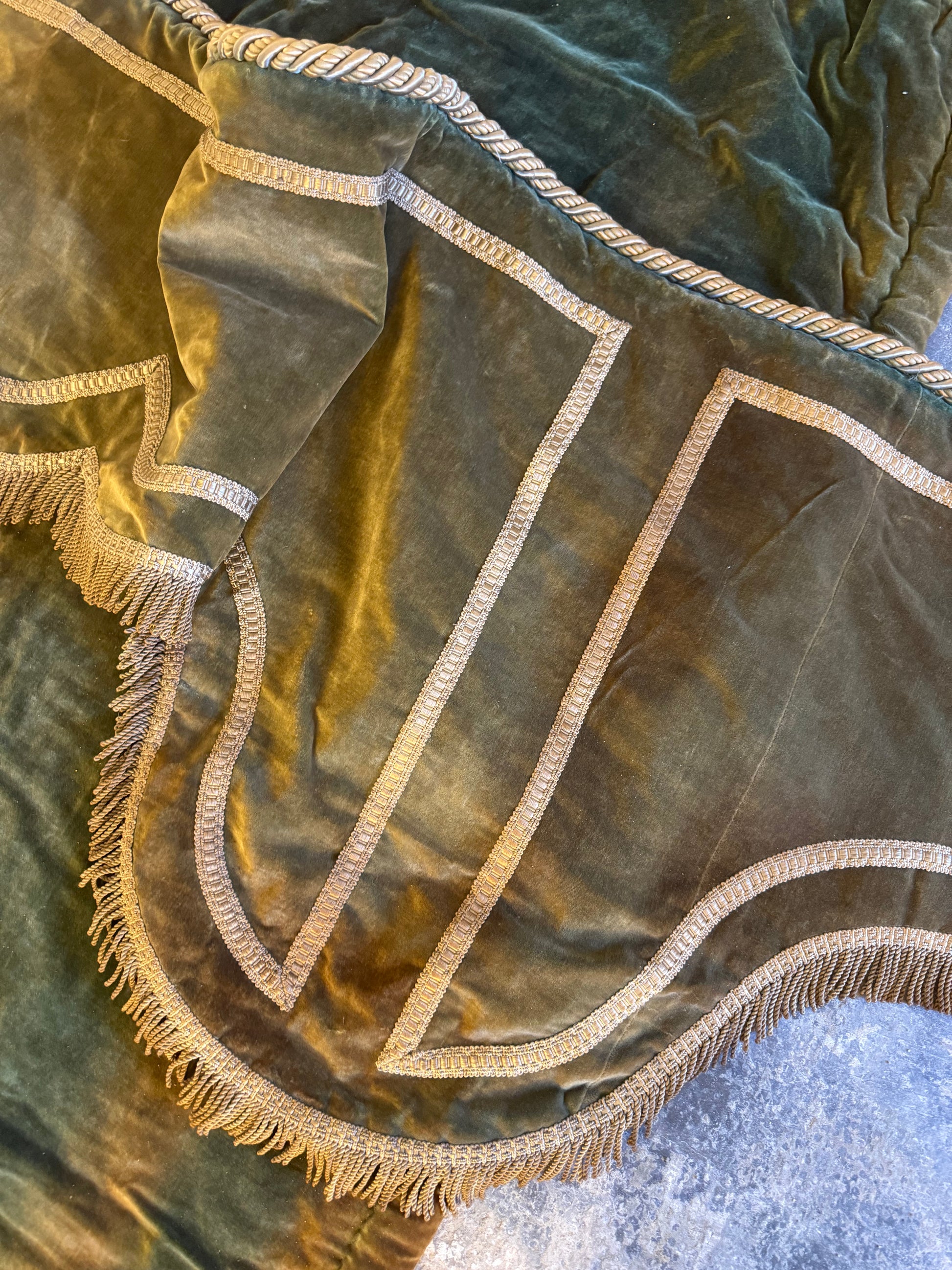 Penicuik House, Scotland ~ Large Pair Green Velvet Curtain Panels & Valance