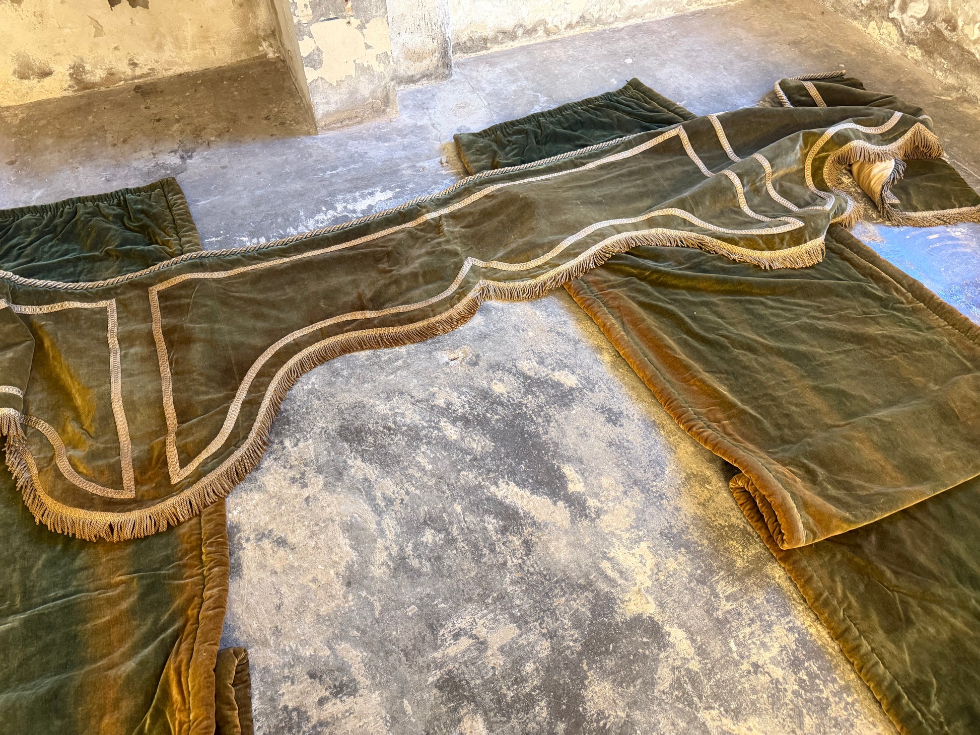 Dramatic and fabulous curtains that have benefited from heavy sun fading, making them into something way better than the norm, cinematic.