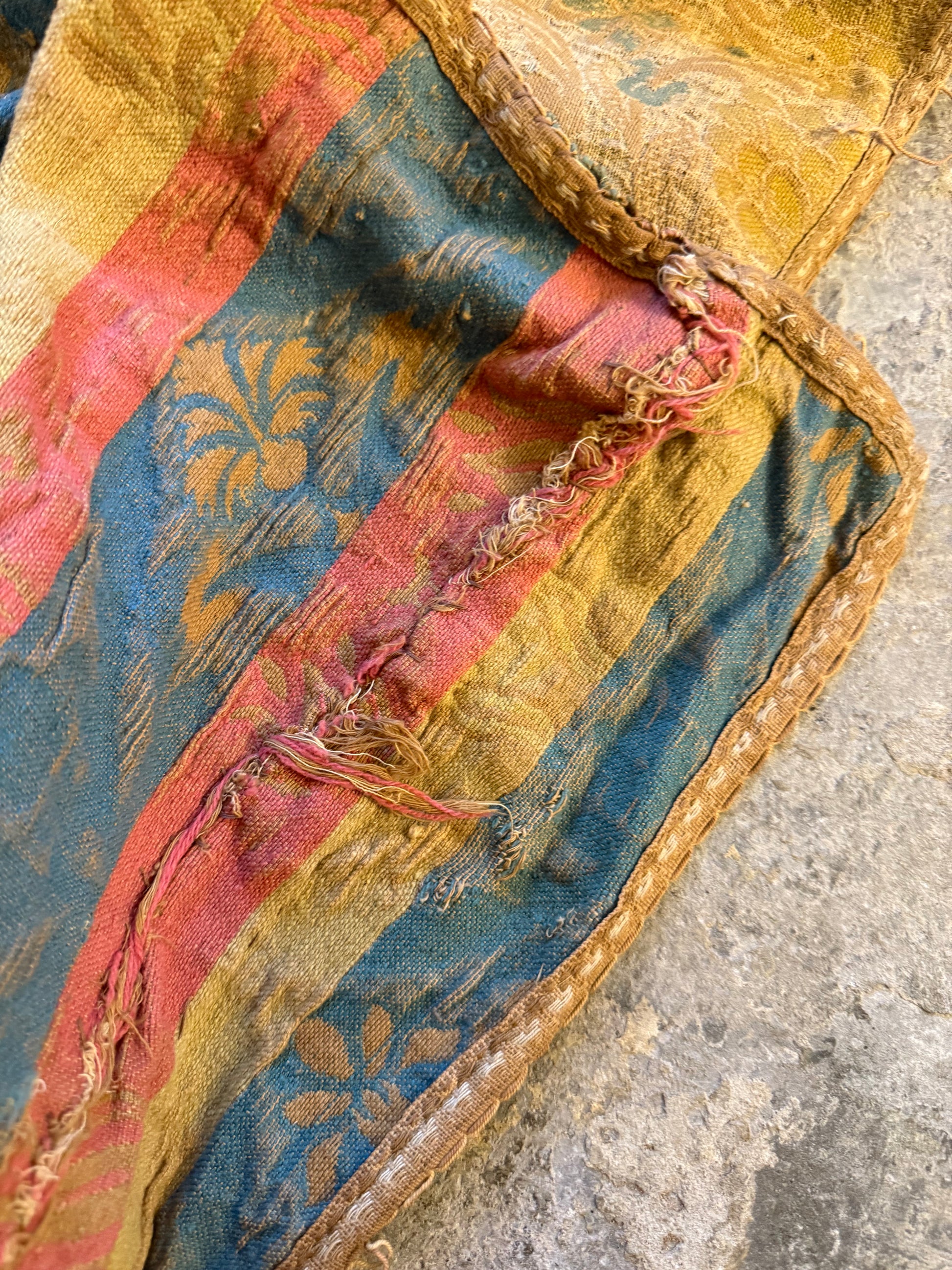 Direct from a local country house, overall in aged and faded condition, with historic repairs and perished in areas.