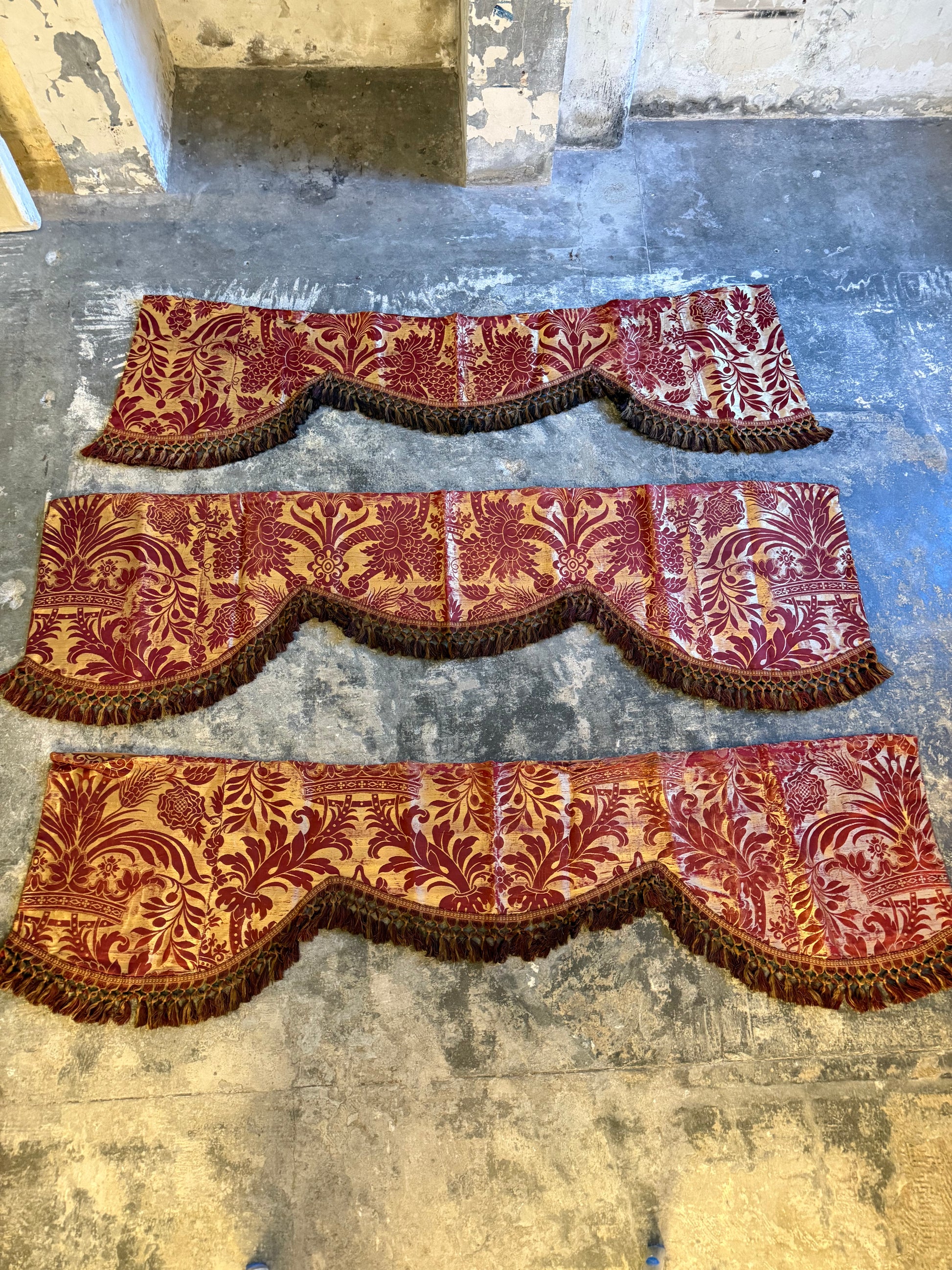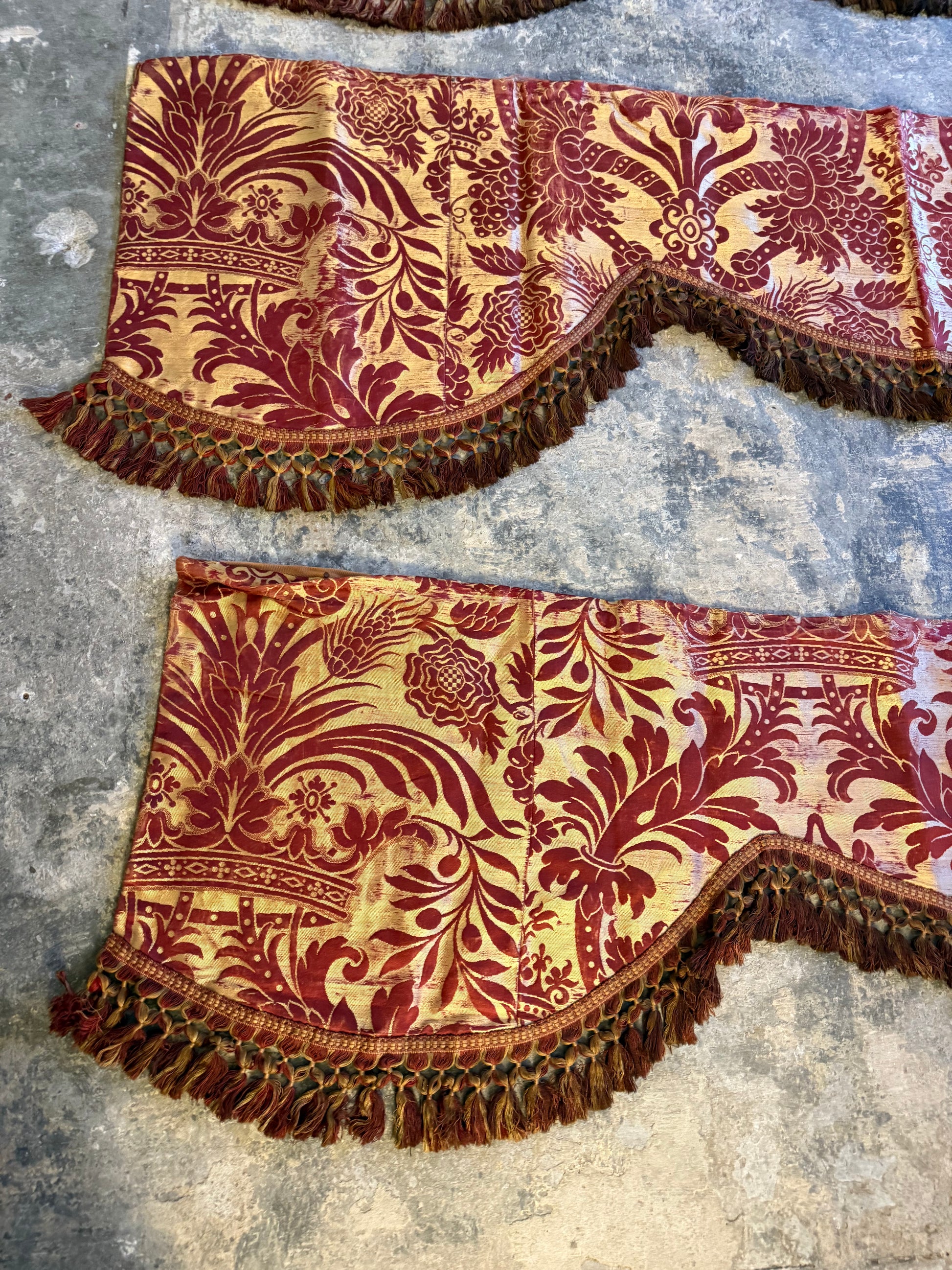 Glamourous watered silk and tasseled fringes, price is for the three.