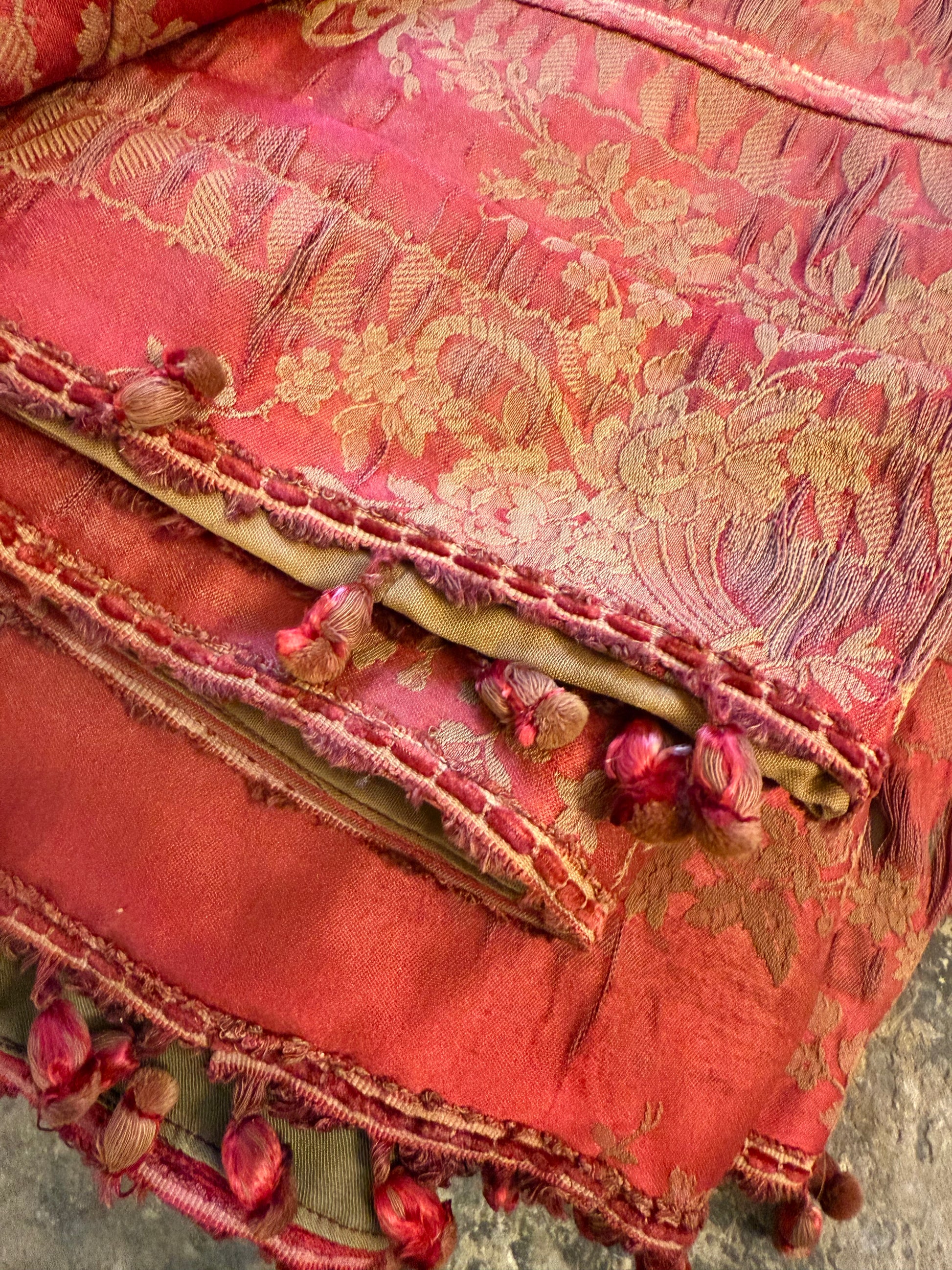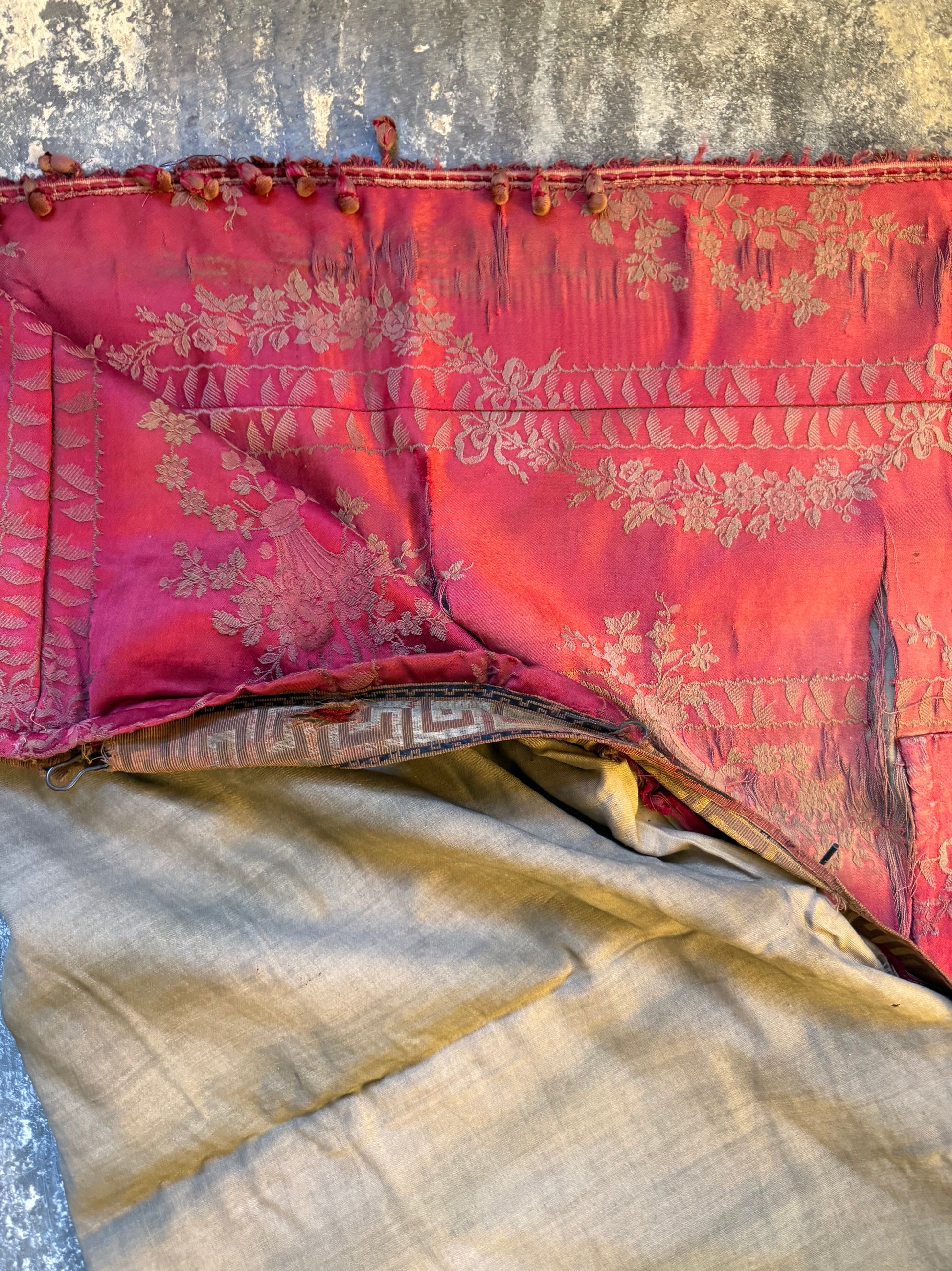 Direct from a local country house, overall in aged and faded condition, with historic repairs and perished in areas.