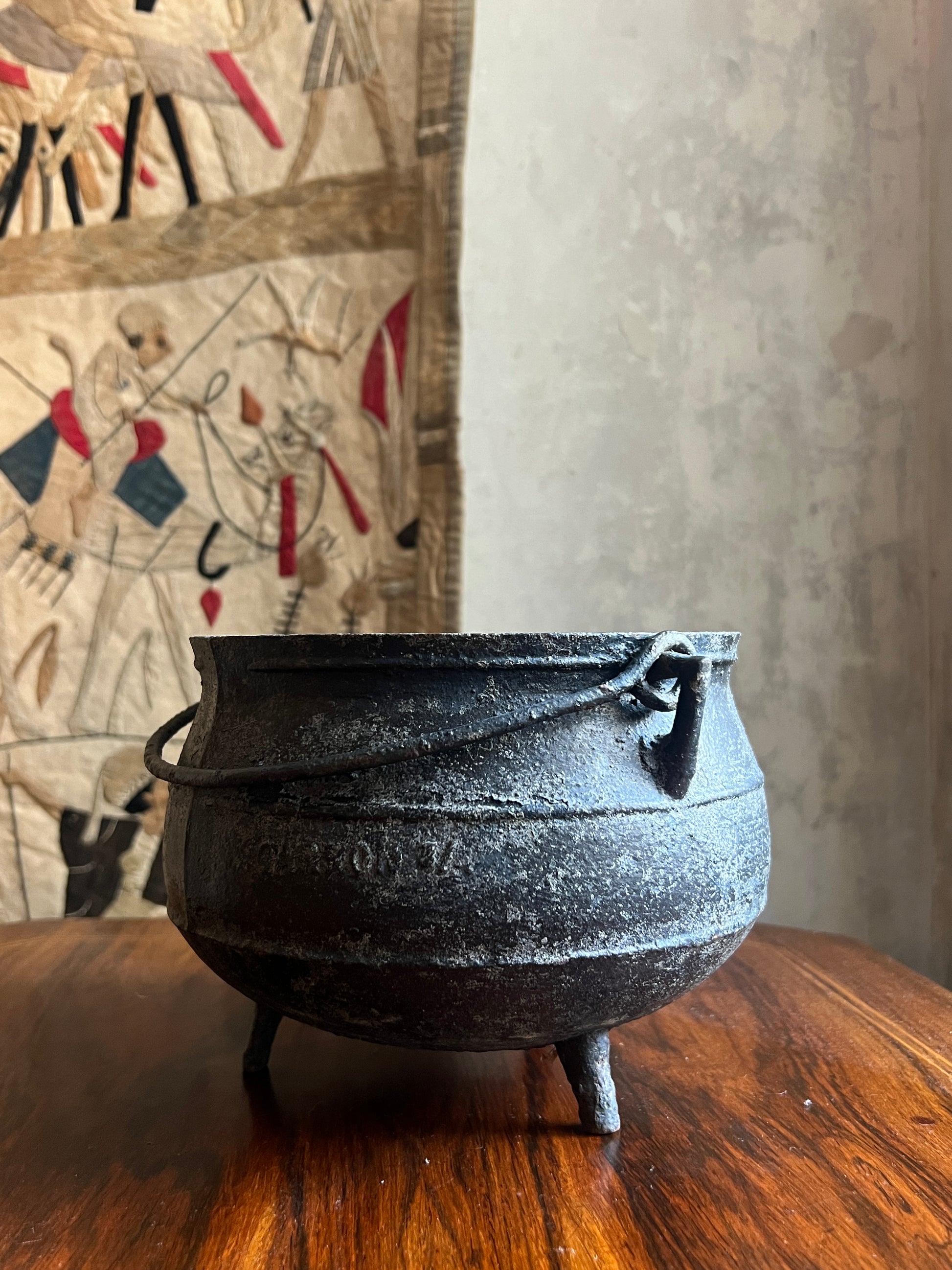 A Diminutive Vernacular Cast Iron Cauldron ~ 19thC Scottish