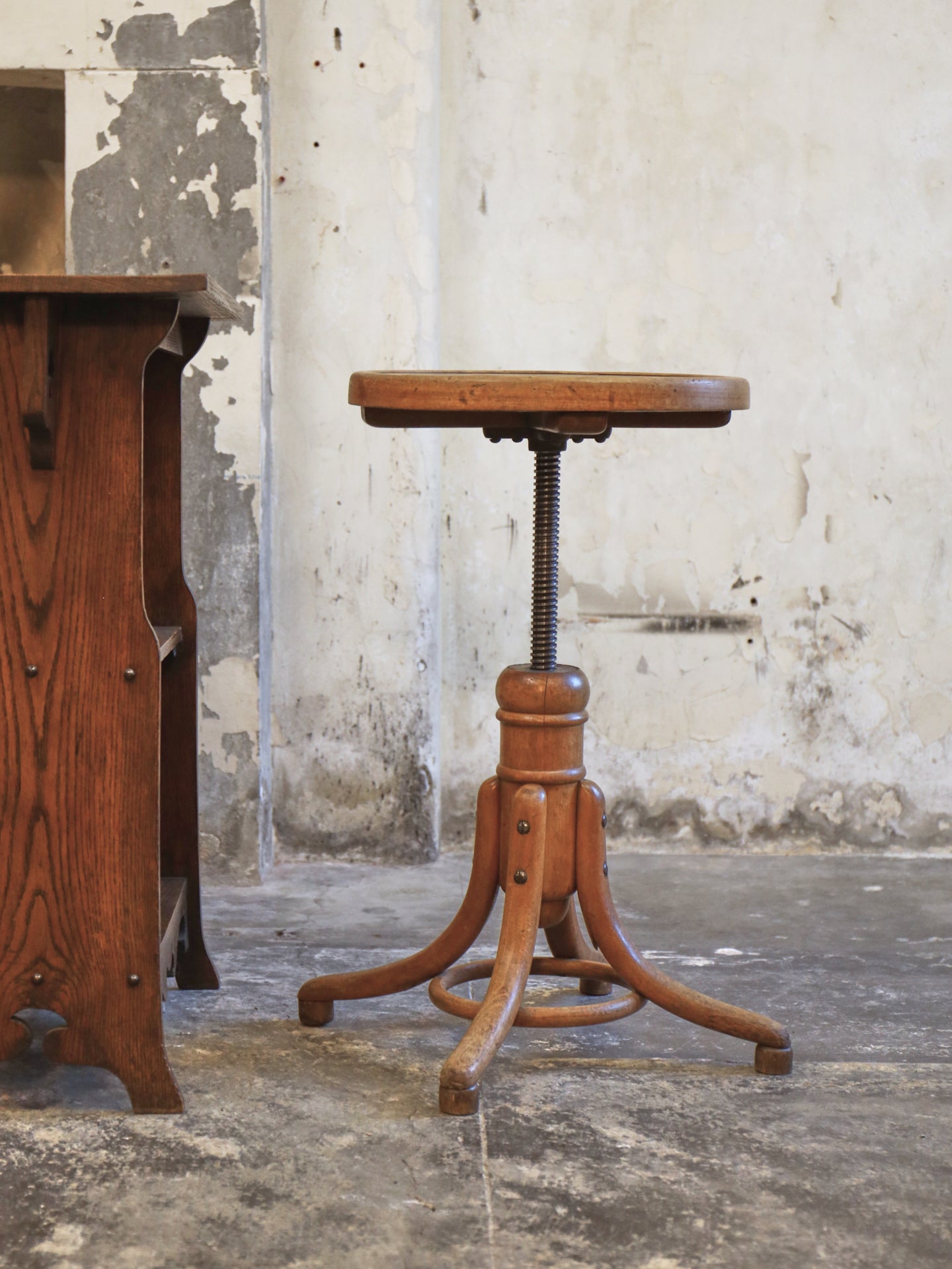 Overall in good condition, the seat has been historically replaced with an age appropriate Thonet seat. Slight splinter split on inside of one leg.