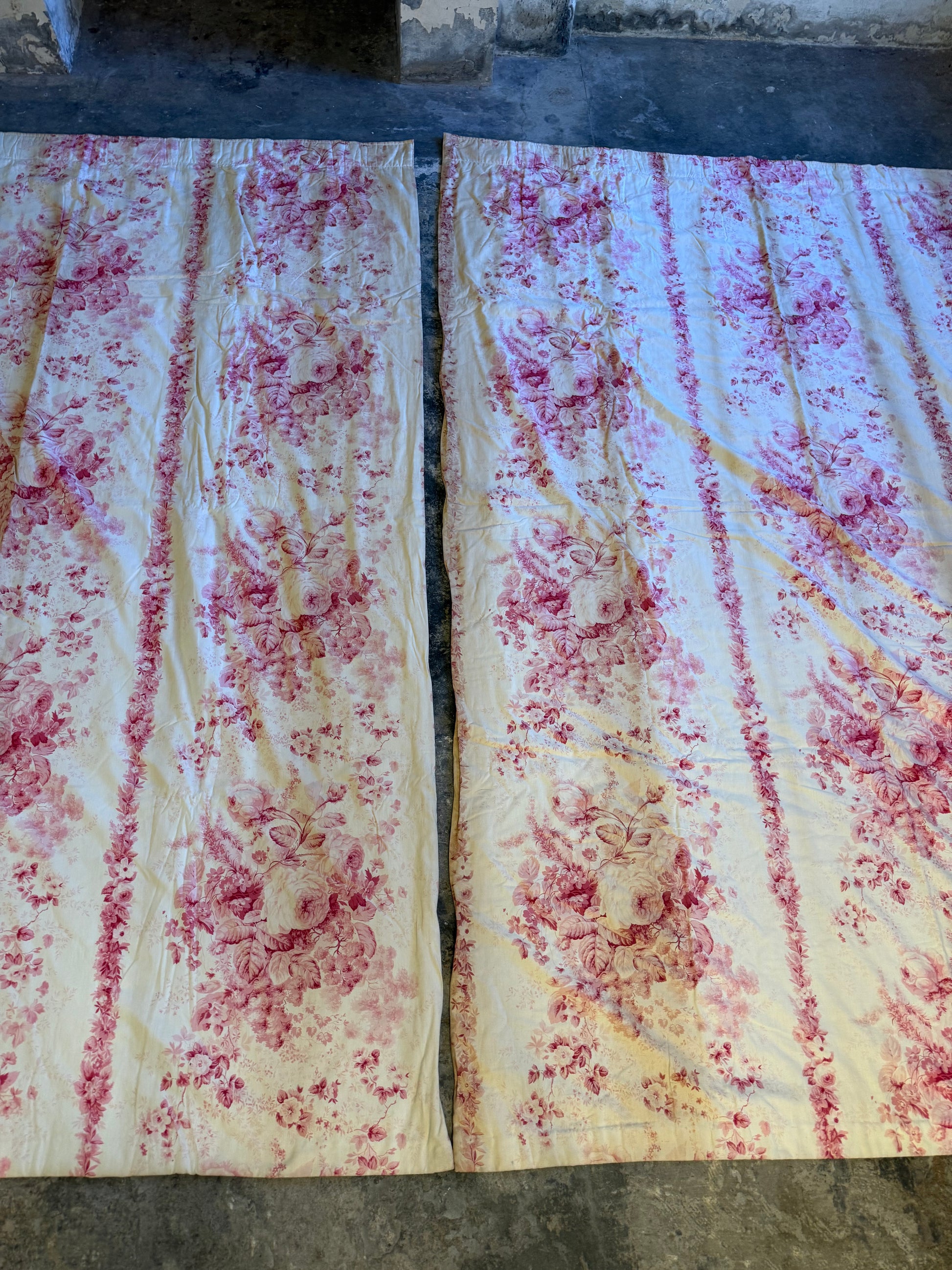 Sold in one lot, these curtains originally supplied by one of Scotlands finest furniture and soft furnishing suppliers, faded and worn but of the best quality when new..