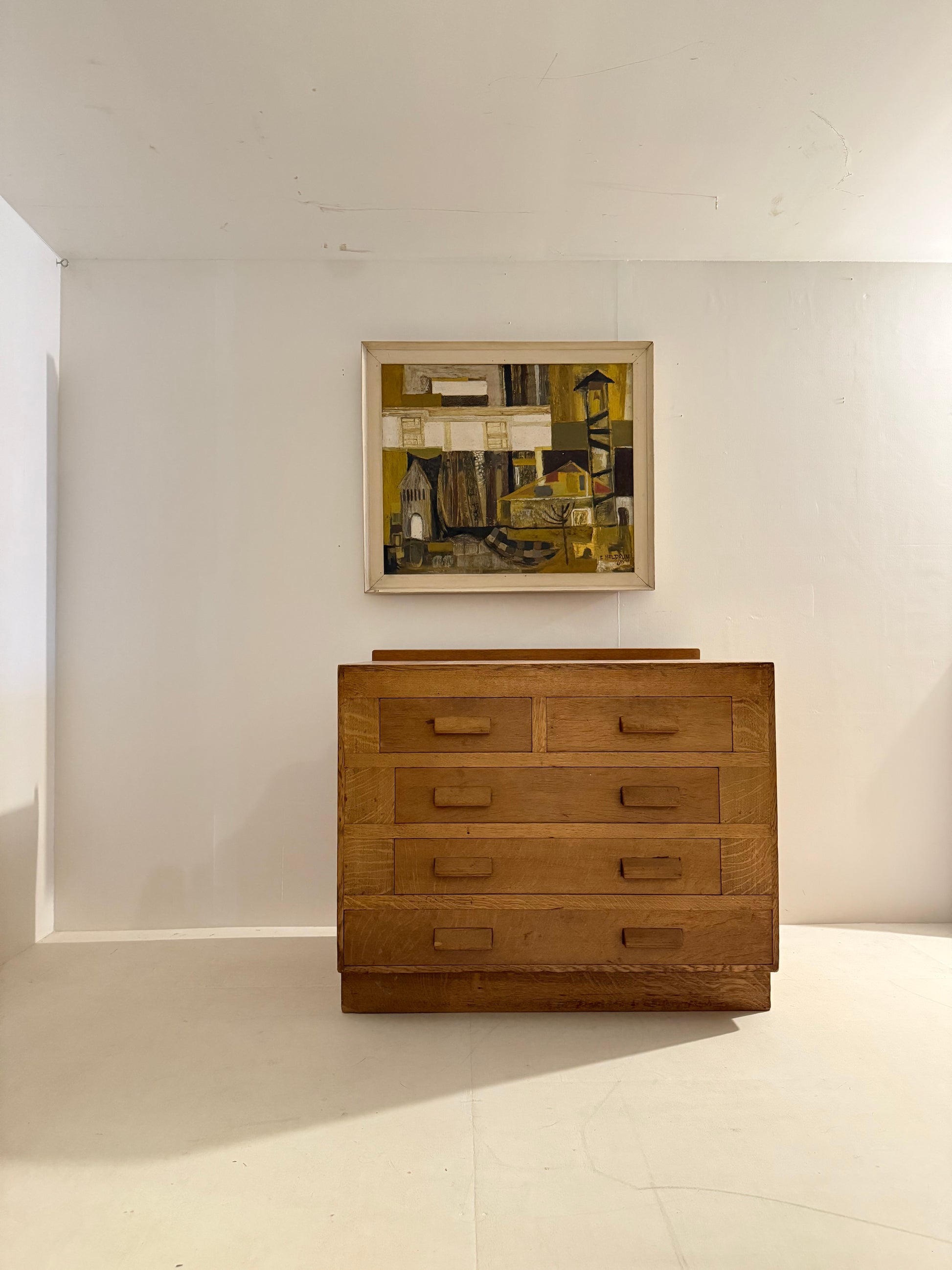 A great example of modernism from the 1960s, a painting that confidently synthesises surrealist undertones with a post-cubist appreciation for structure.