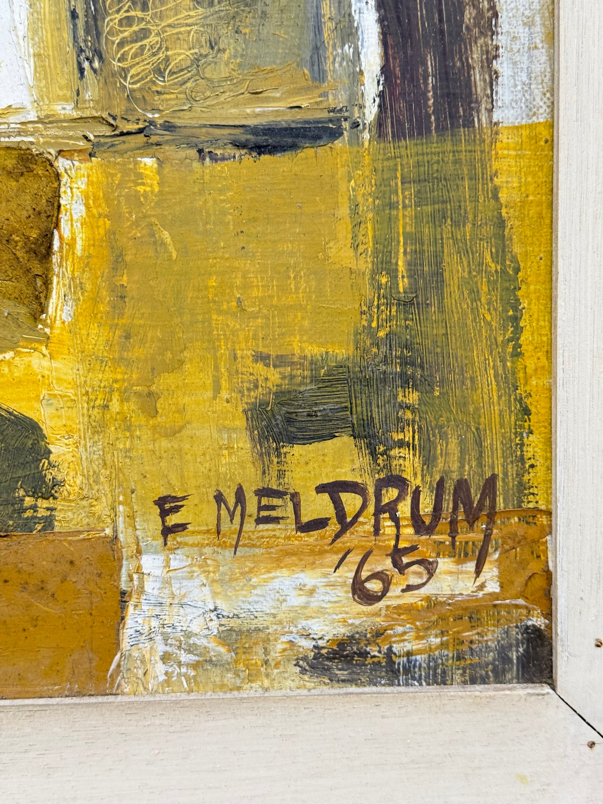 Signed and dated: 'E MELDRUM '65', a historic exhibition number lower left of frame.