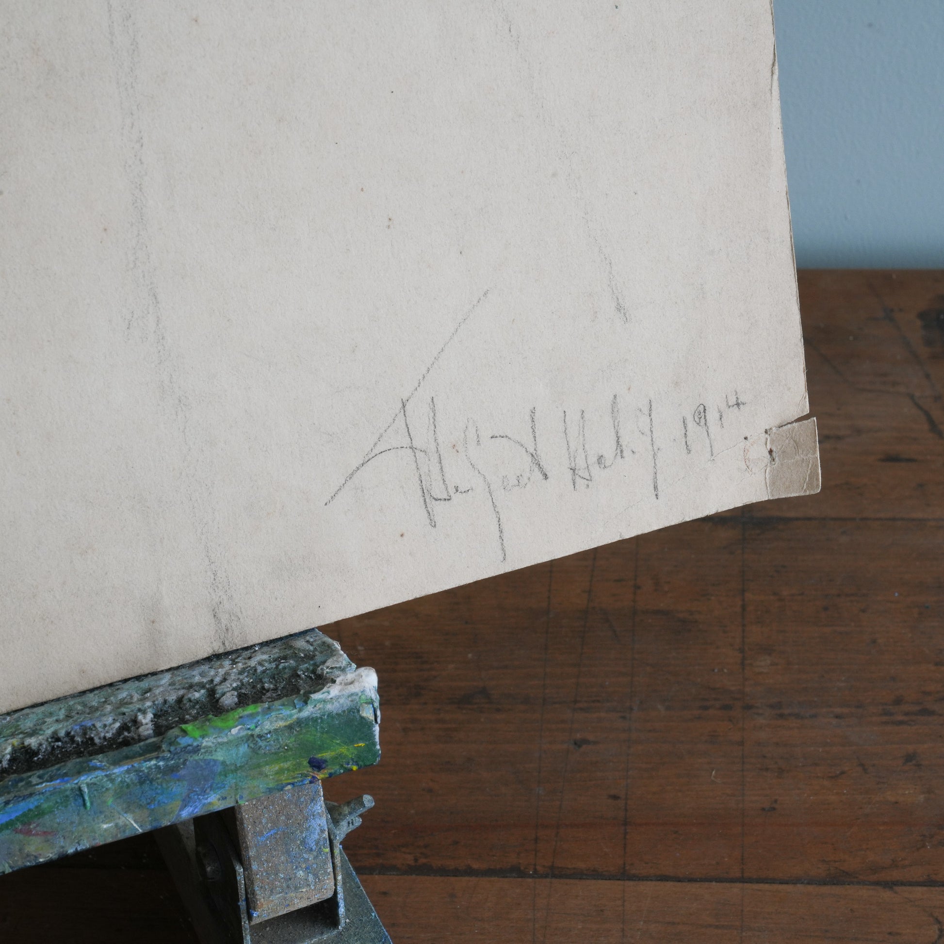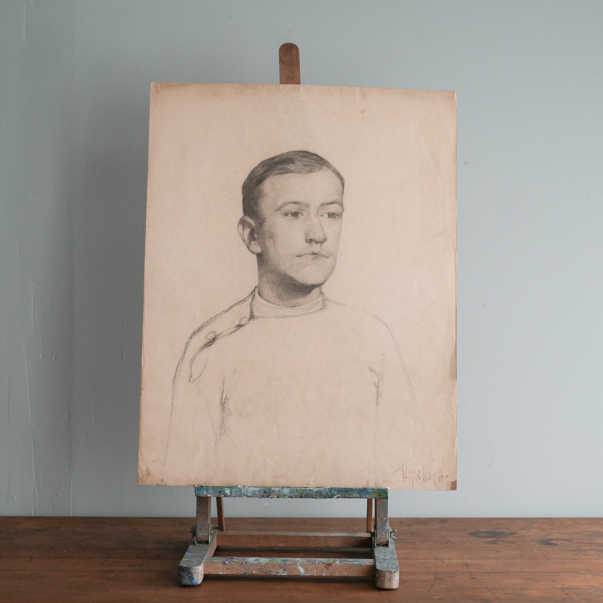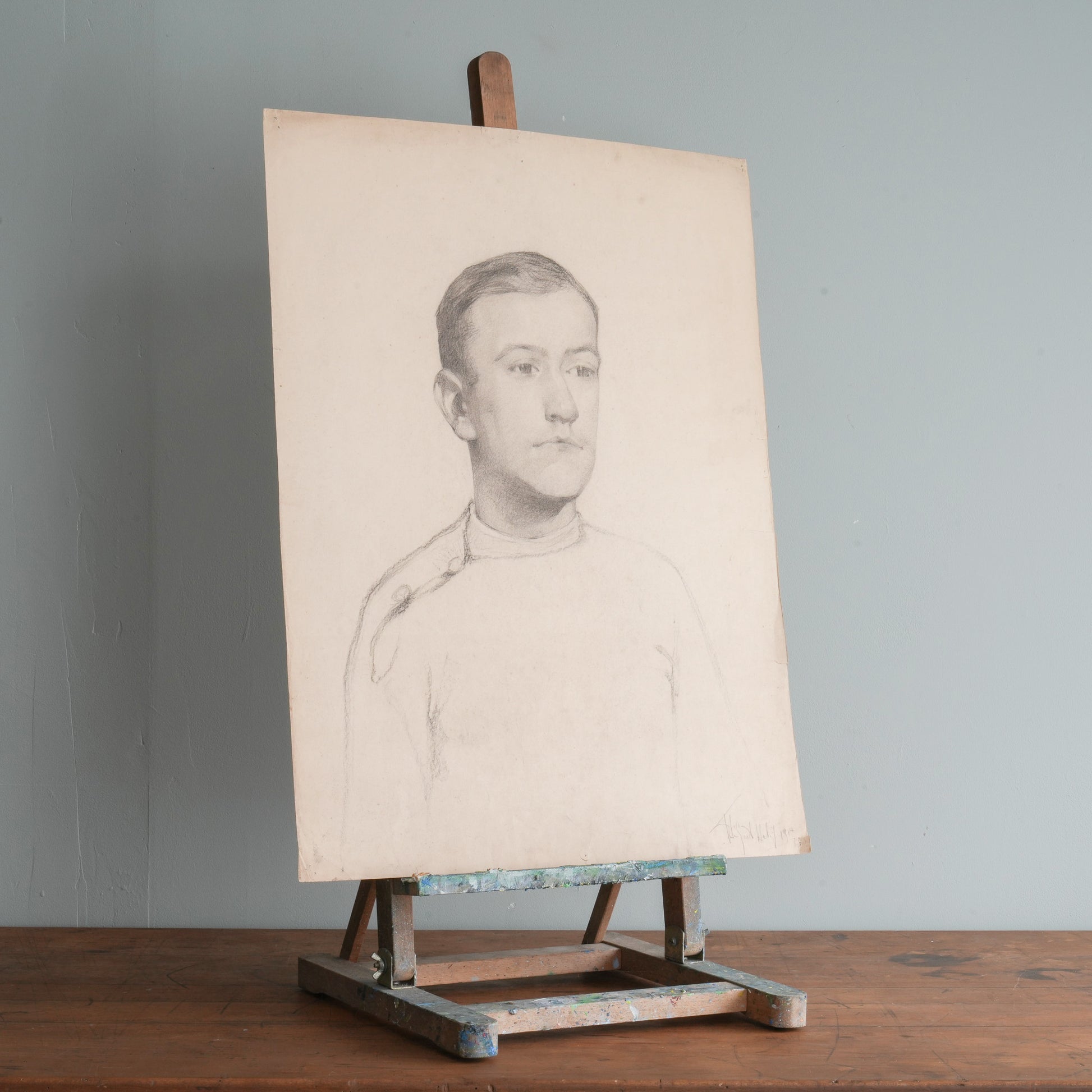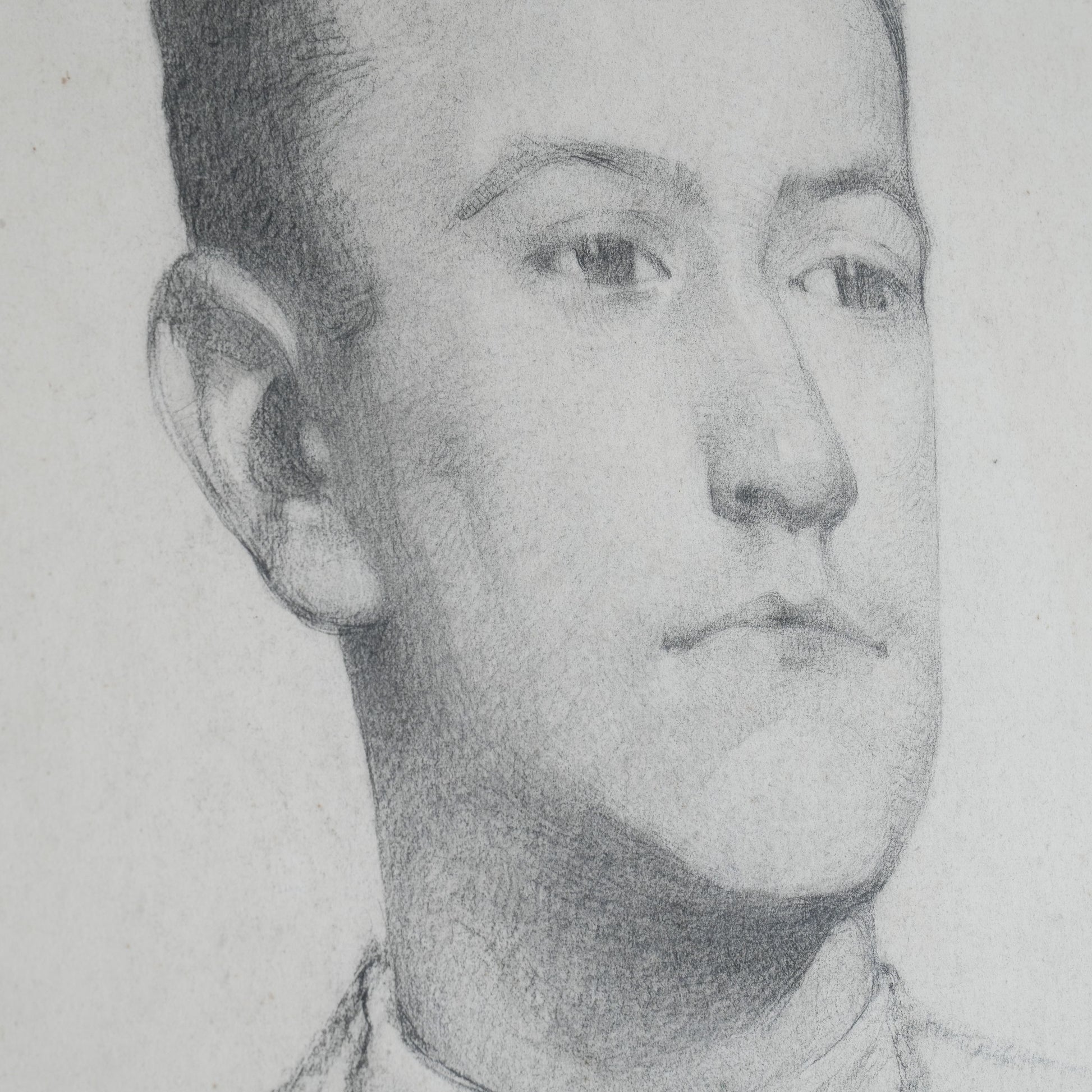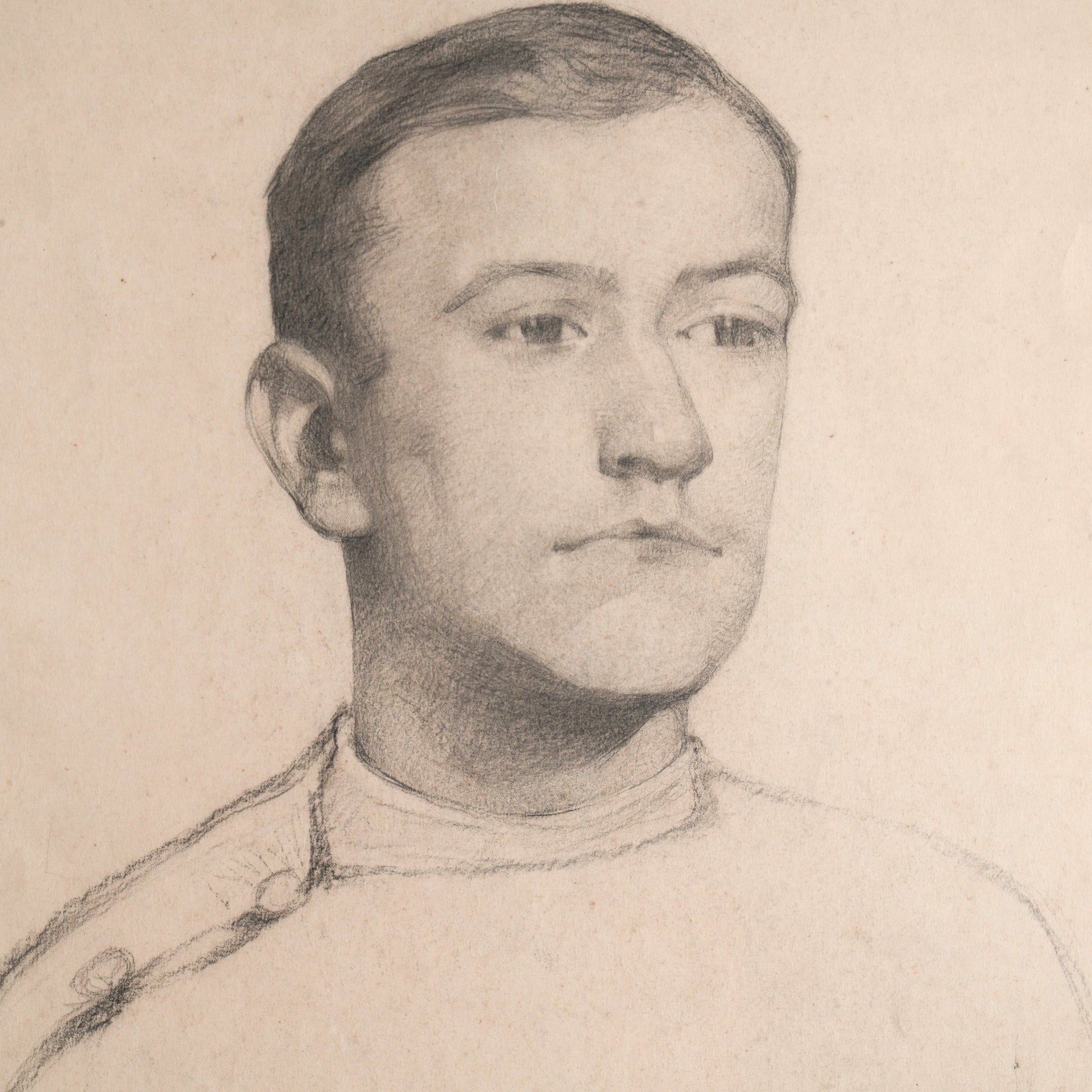 A Fine Quality Pencil Drawing of Young Man in tunic on paper.